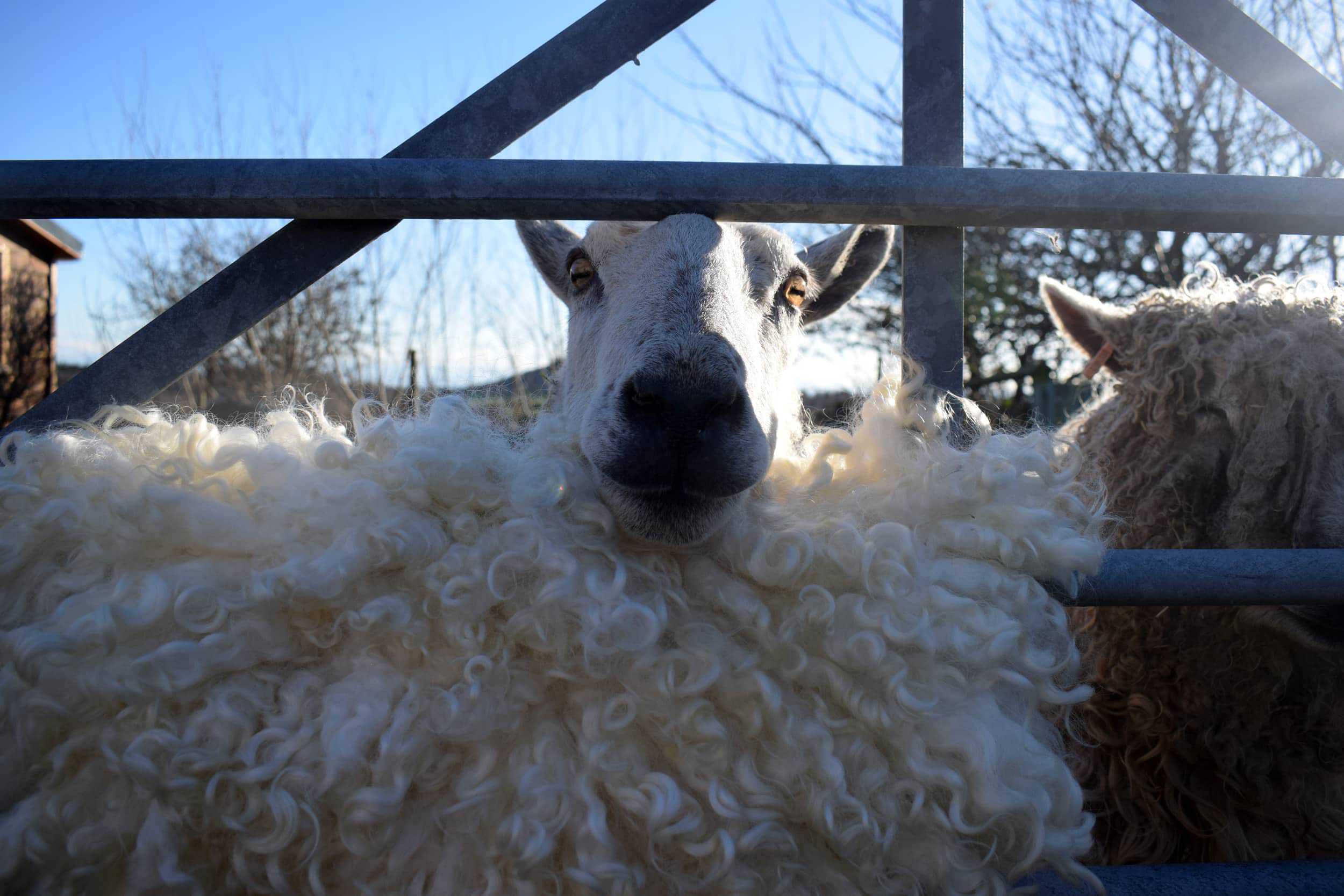 The sheep: Alice is a lovely gentle Greyface Dartmoor cross Wensleydale breed sheep. She is a big chunky sheep who has the most magical looking long curly locks that have a natural shine to them and always make me think of unicorn manes. You can see Alice and Lily who also played a role in creating this seat pa and their sheep friends in the photos checking out this seat pad.