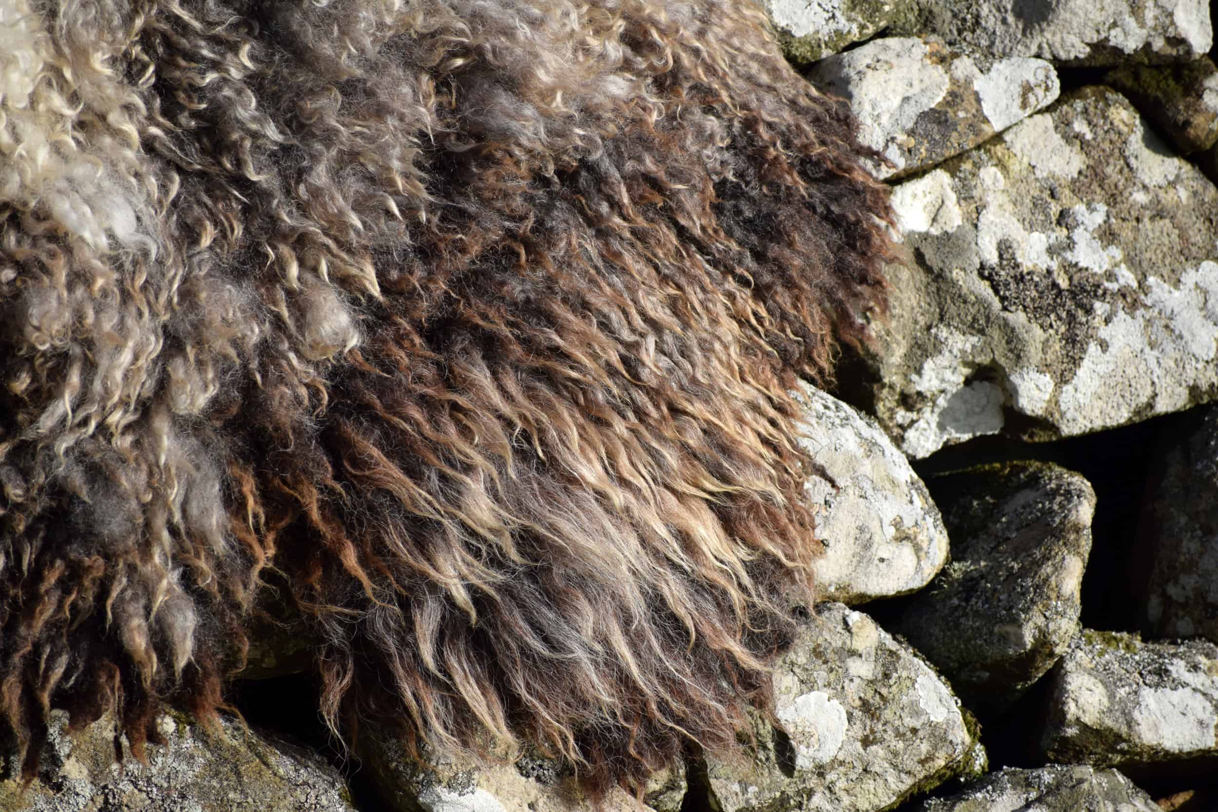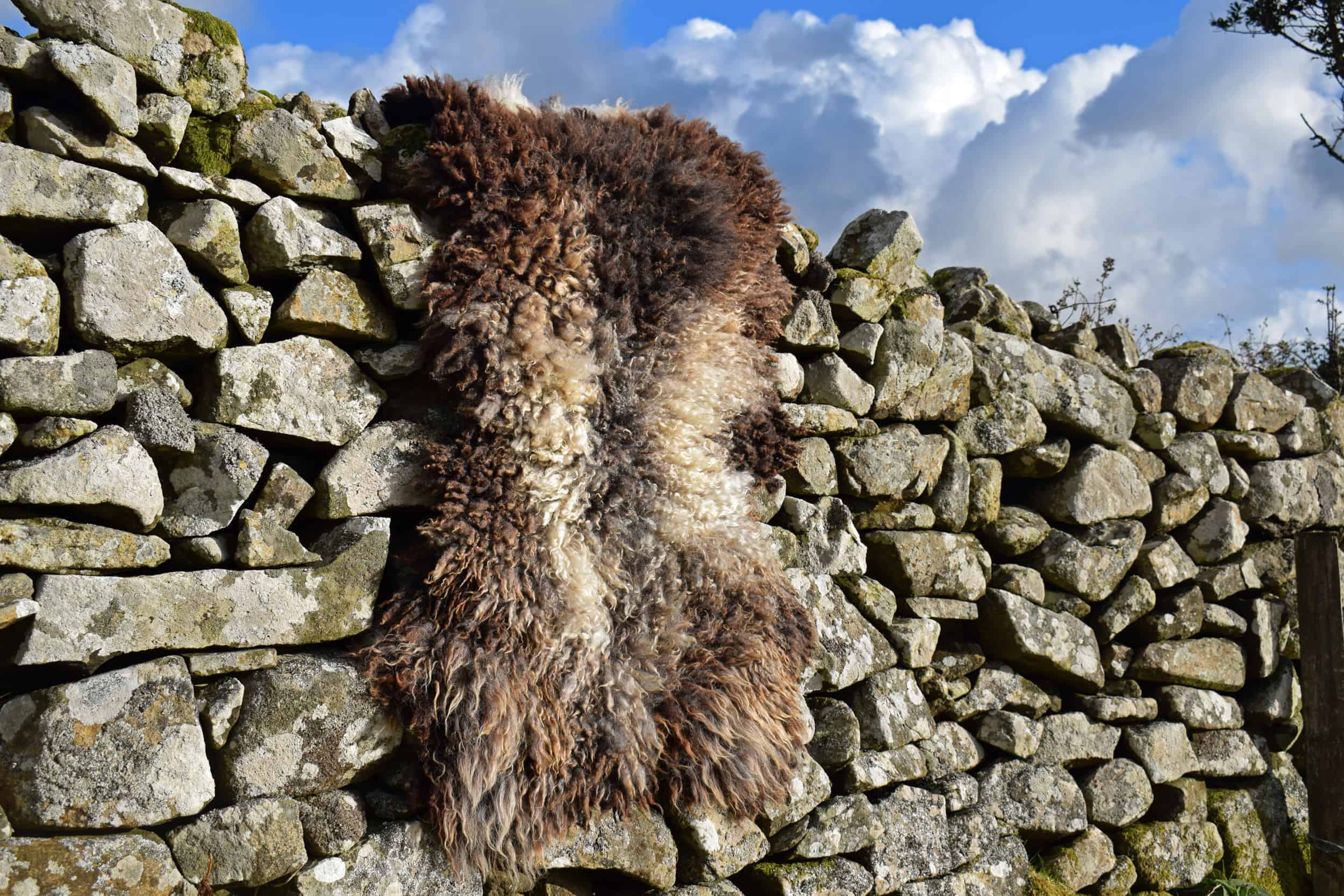 Bruno’s fleece would look amazing as a display piece, photo prop, or floor rug. It is well felted on the reverse and has an amazing luxurious feel and look about it. Bruno’s fleece has a great variety of different wool structures and natural colours to it, the area that was around his neck and shoulders is darker, fluffier and denser, the lighter patches that were on his sides are long and silky to touch and the part of the rug that was worn on Bruno’s rear legs is a little hairier and longer with beautiful colours. I would class it as a heavyweight rug, it weighs quite a bit so it is probably not something you would want to sleep under but perfect as a floor rug in a bedroom or cosy sitting room. Being made of only wool (and the odd bit of hay…) it is completely biodegradable and kind to our planet…