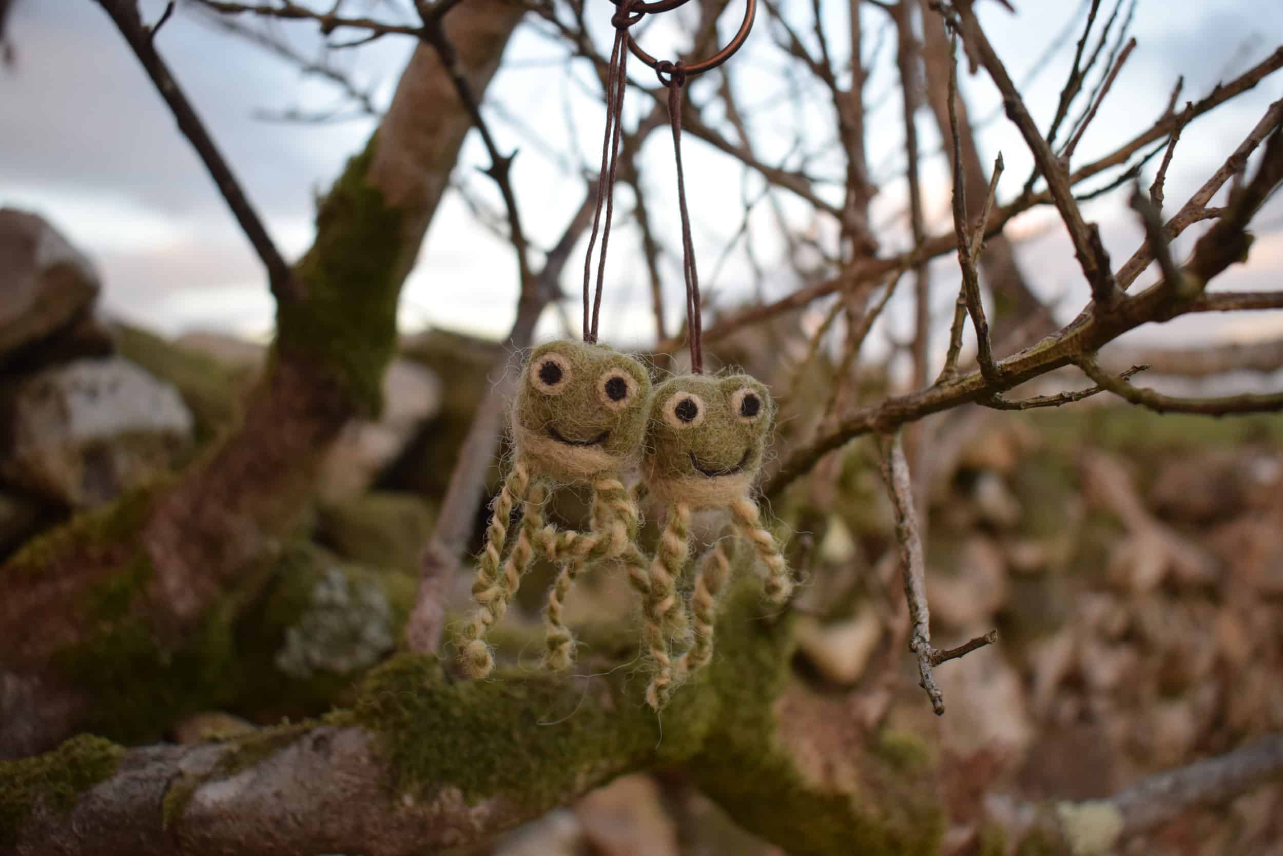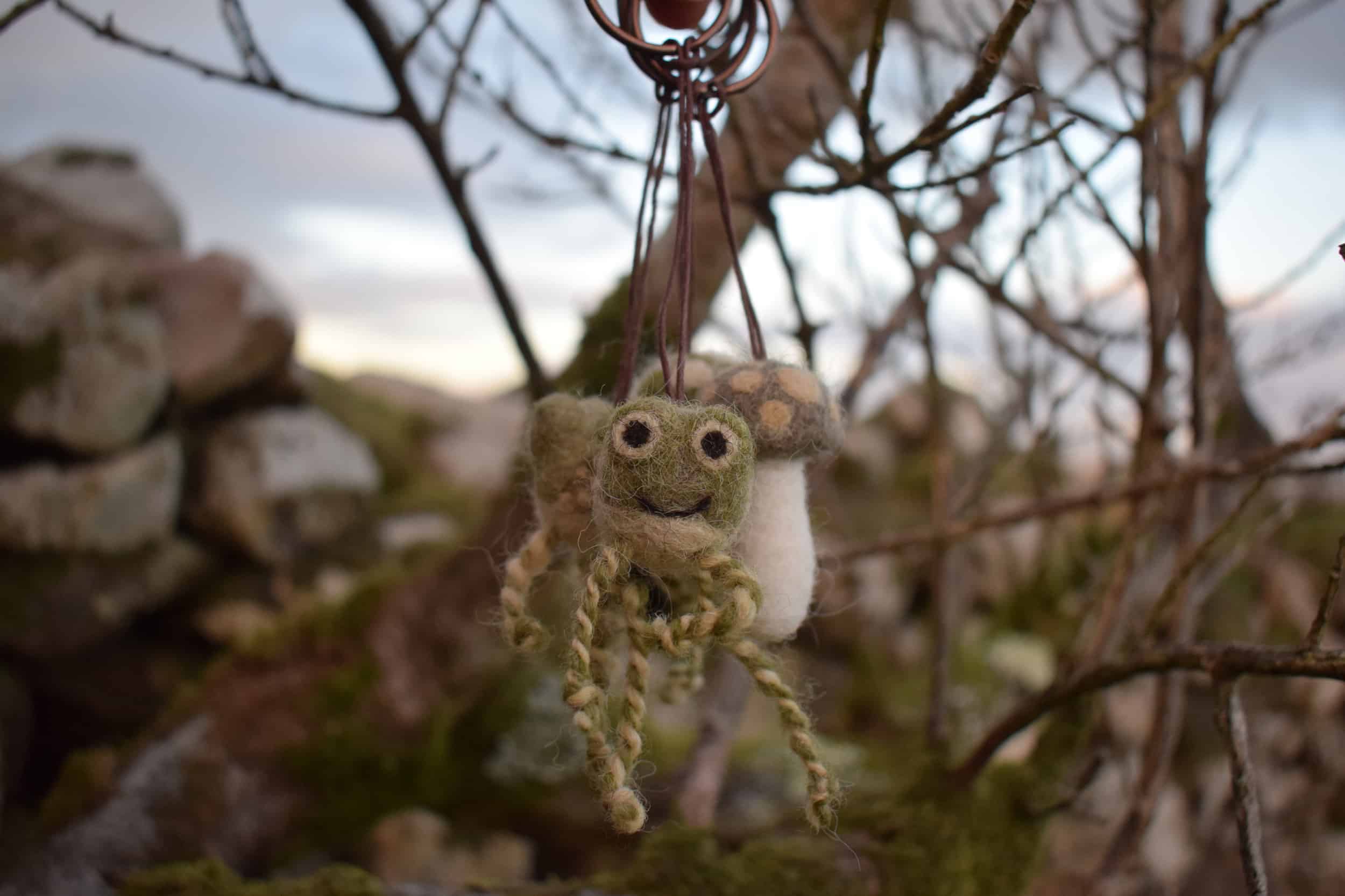 A super cute little toadstool toad frog keyring made from 100% wool that I have dyed and needle felted into the shape of toadstools and toads. These are then threaded through a length of strong waxed cotton twine and fastened to a keyring. They are lovely and lightweight keyrings, not heavy or clunky. Perfect for the Autumn and Halloween seasons they make sweet little gifts and practical keyrings for all toad and frog lovers. Each sale supports my woolly flock and me. Most of the wool used to make the keyrings comes from Mango the sheep. The cotton and the metal keyrings are sourced from small British suppliers on Etsy. I shear all our sheep myself with traditional blade shears and all the fleeces are processed by hand here at our home.
