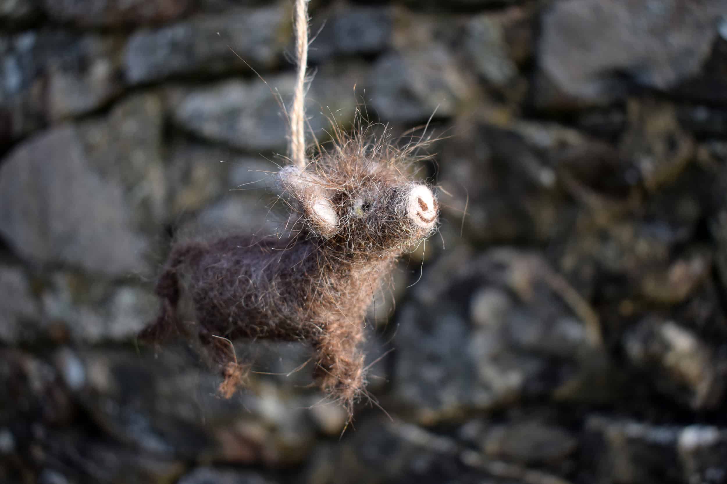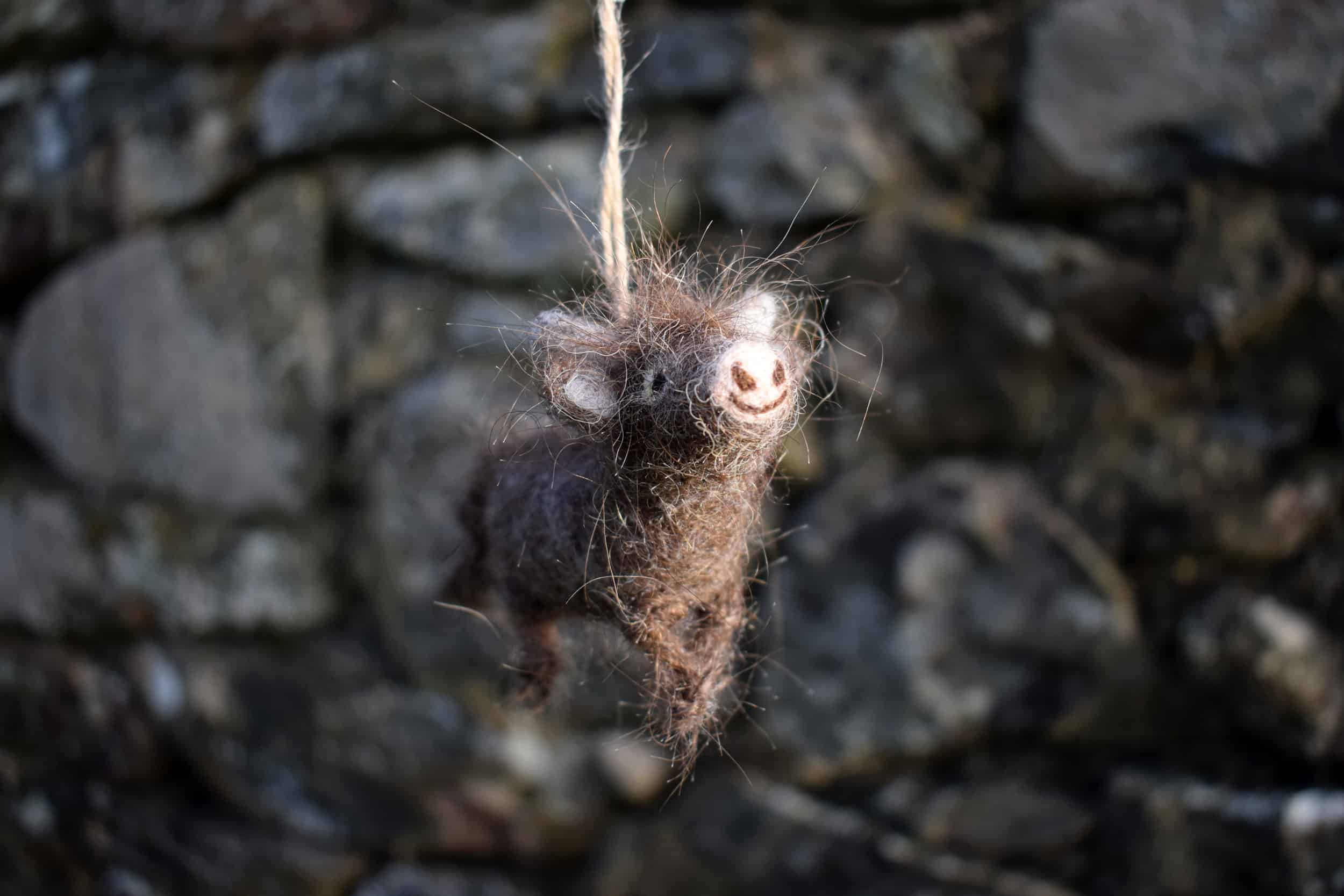 The inspiration for the needle felted hanging cows came from being gifted a bag of real hairy Highland cow hair from some friends (Ema and Steve) who own The Clean Goat Soap Company. Ema’s dad lives on Anglesey and owns two Highland Cows who he brushes regularly. Ema heard that I was curious about felting with Highland cow hair and kindly sent me a bag of her dad’s pet Highland cow’s hair! Which is the actual hair I have used to make some of the needle felted cows. I have always had a soft spot for cows and in fact, I once owned 3 dairy calves who I hand-reared. They were a Jersey, a Brown Swiss cross Jersey and a Friesian cross Jersey. Unfortunately, as they grew rather large I realised reluctantly that I couldn’t keep them long-term so I had to let them go to join a herd but I have very fond memories of them.