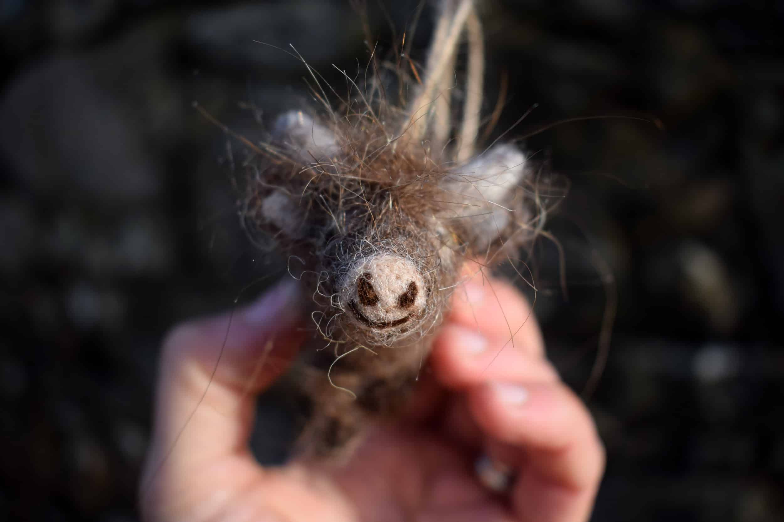 All my needle felted items are very solidly felted with carefully added details. As such, each takes a very long time to make, the hanging cows each take over 3 hours to make at the felting stage. That is not including the time spent shearing the sheep, washing the wool, carding, dyeing or spinning the little legs and tails!
