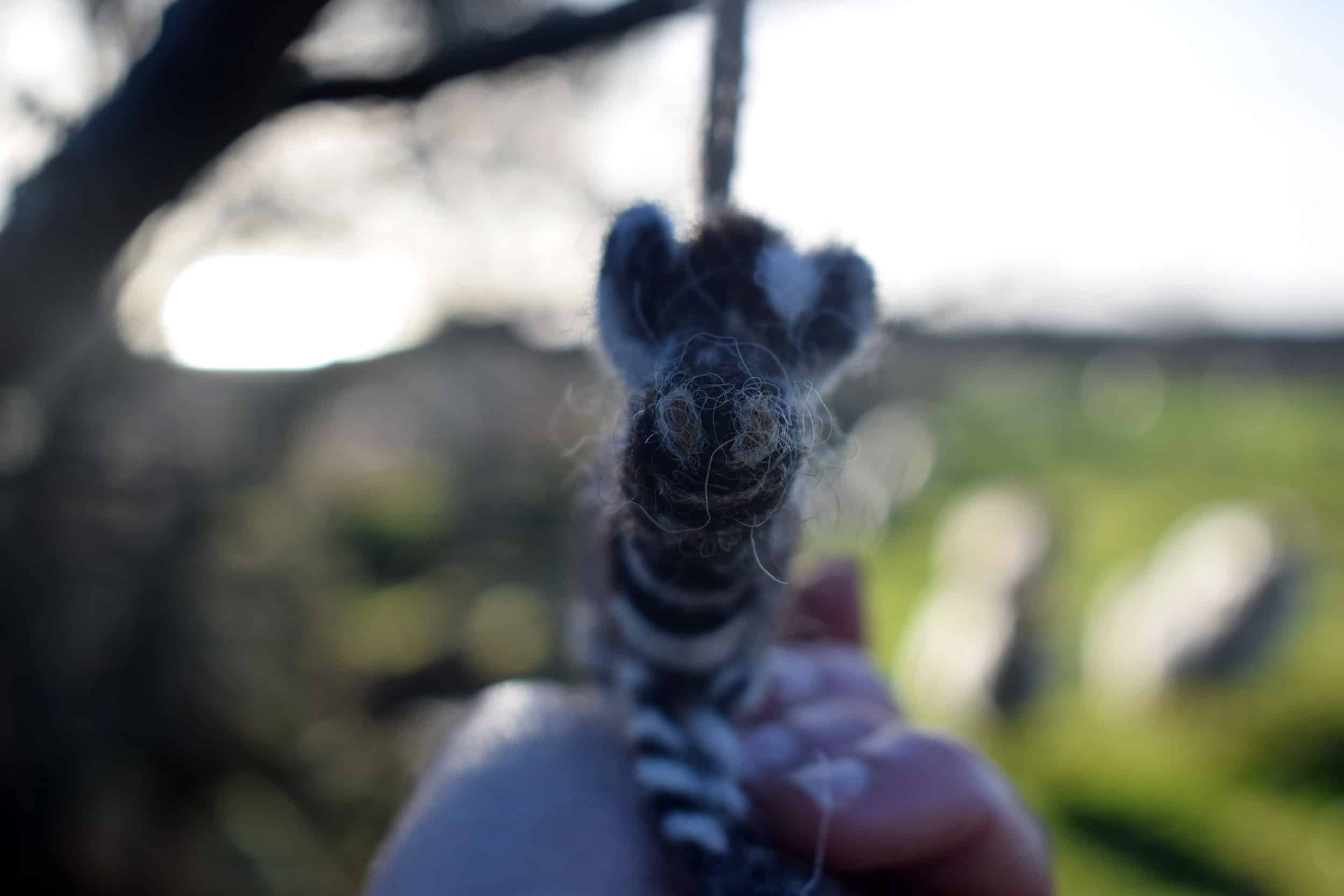 The process: Humbug the zebra is made with a process called needle felting – the wool is shaped and sculptured and repeatedly stabbed with a special barbed needle causing it to felt and become very hard. Sometimes wire is wrapped with the wool to make the finished item poseable – but not in this case. Stripes’s body is made with just wool from a sheep called Mango and the dark brown stripes are Blossom’s wool.