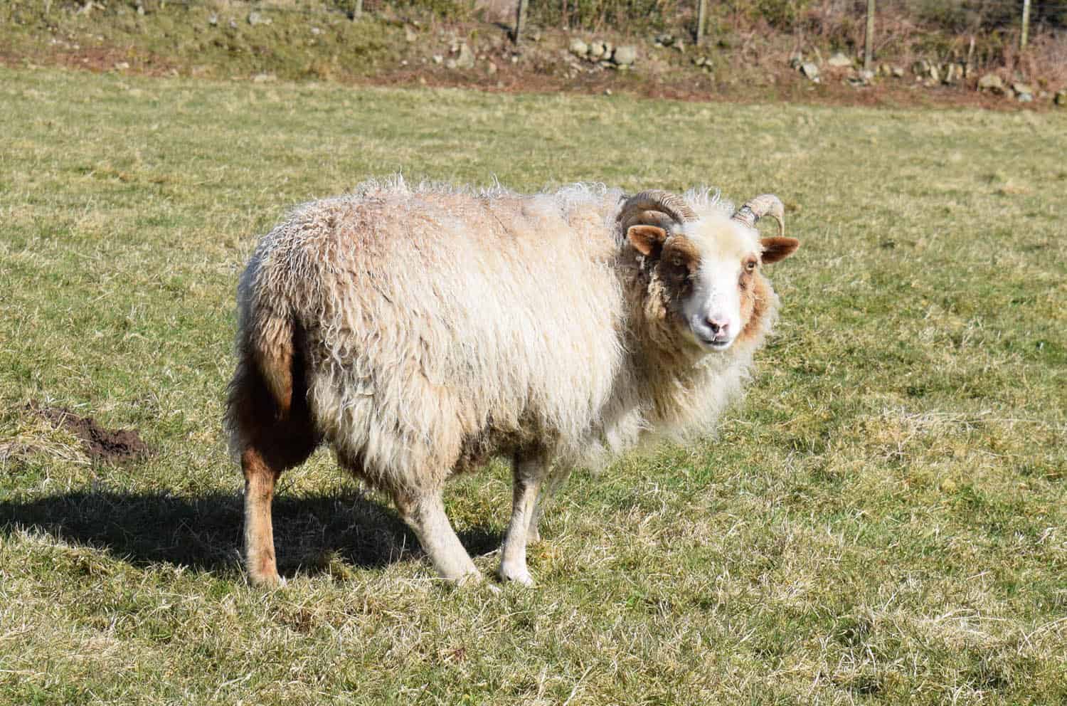 Martha was born here on the 19th of March 2014. When she was a lamb Martha looked like a calf with her white face markings. The year Martha was born was the last year that we bred all the sheep. As in 2015, I had my own daughter and lambing took a hiatus and I never went down the path of breeding loads of lambs to sell ever again. Back in 2014, I was struggling with the job I was doing and financially so I couldn’t keep many lambs that year. Martha would probably have gone to a new home but she developed an allergy to sunlight around the time she was weaned. This caused sores and skin loss on the white pigment on her face. As such there was no way I could sell her and so she stayed here with her mum Harriet. Then is 2018 Martha had lambs of her own. These were the first lambs born here since I had my own daughter Elsie in 2015. We named Martha’s twin lambs Pip and Posy after Elsie’s favorite book characters at the time. Martha’s lambs took after their mum with their fun brown and white markings. Because they grew up with Elsie they absolutely love children and are very friendly and affectionate. Unlike their mum Martha who prefers to keep to herself these days. Martha was a very aggressive protective mother. So much so that she even rammed me and was not very nice to the other lambs who weren’t her own. For some reason, I don’t have many photos at all of Martha. She always seems to be hiding away in the background and has a knack for evading the camera. In 2019 I used Martha’s fleece to felt and weave 2 matching cushions. One side was felted to resemble a ‘sheepskin’ and the other was woven on a peg loom. Some of her mum Harriet’s fleece was also used in the weaving. One of these cushions was bought as a birthday gift and the other was bought by a local lady who is a great supporter of mine and the sheep. Martha’s fleece is beautiful and really lovely to work with. It felts very well and it is also lovely to weave and spin. Martha’s cushions helped pay for the sheep feed that fed her and her flock mates over the winter of 2019/2020.