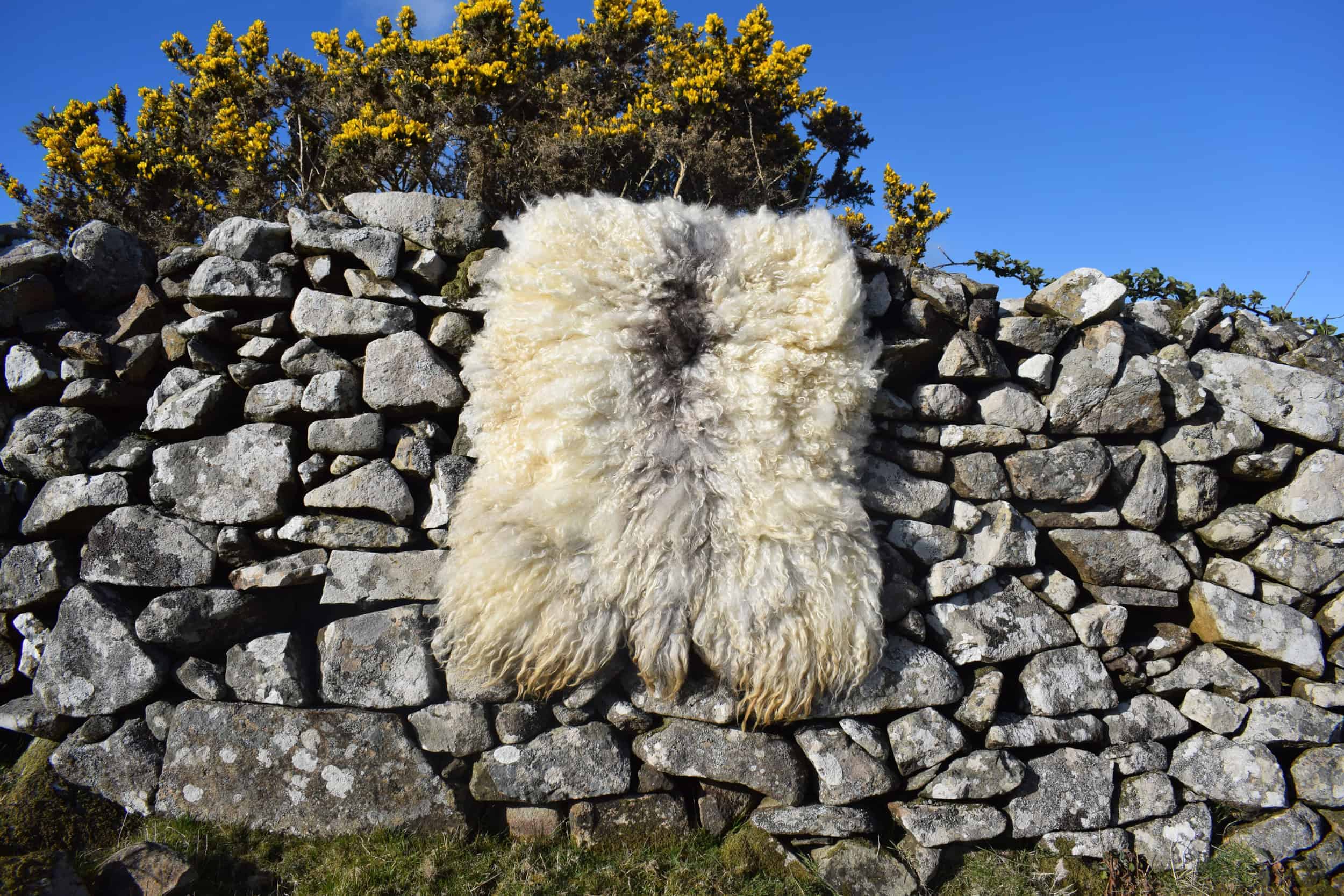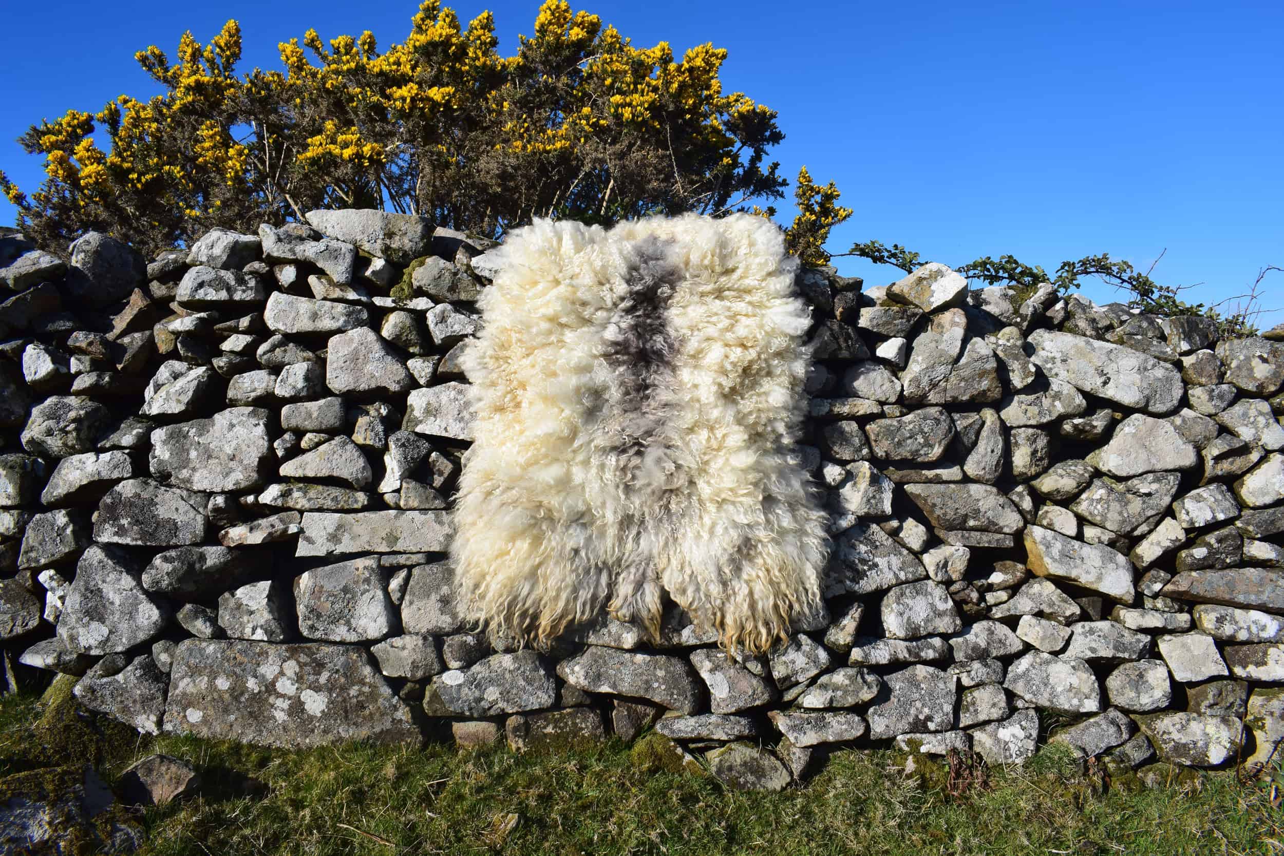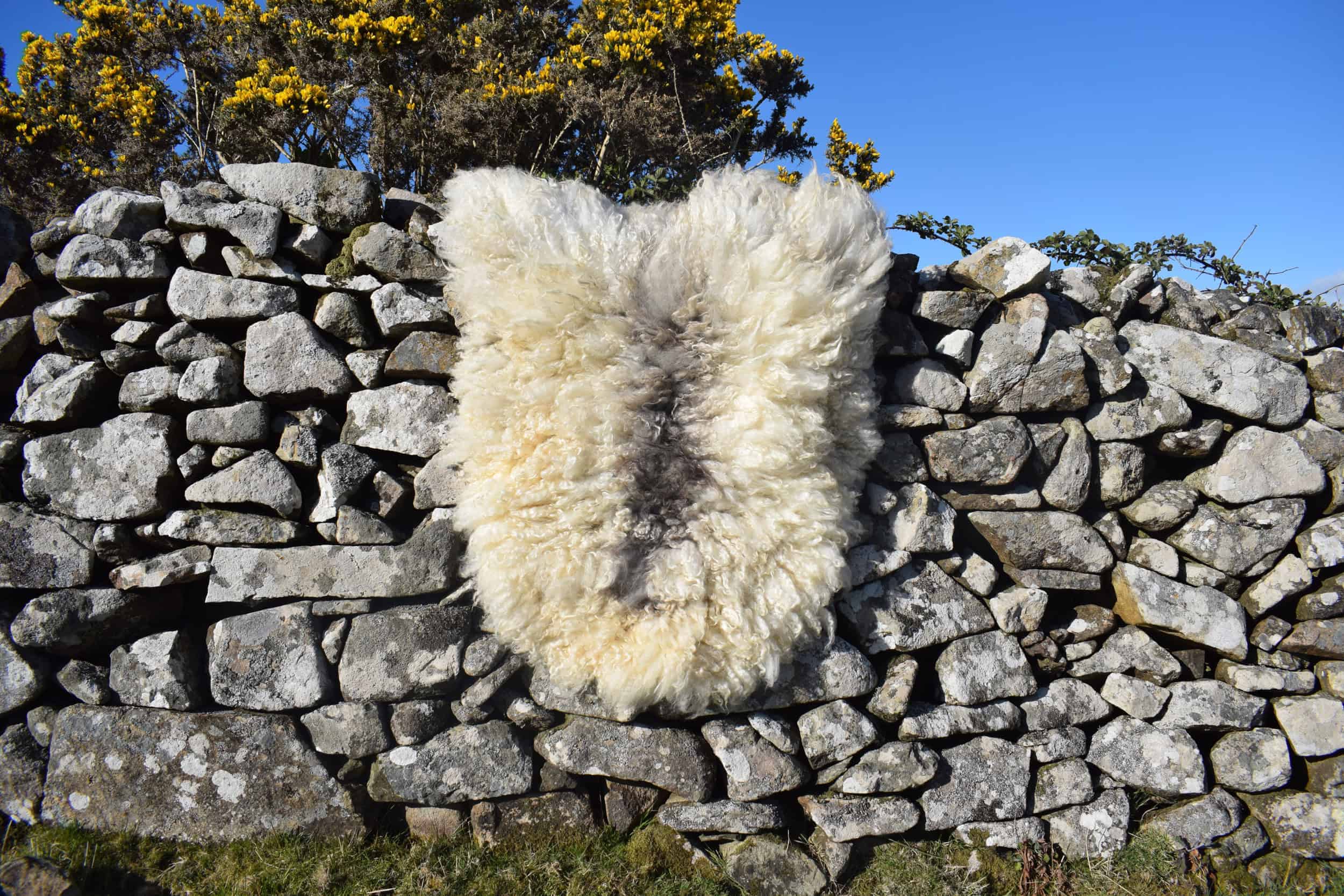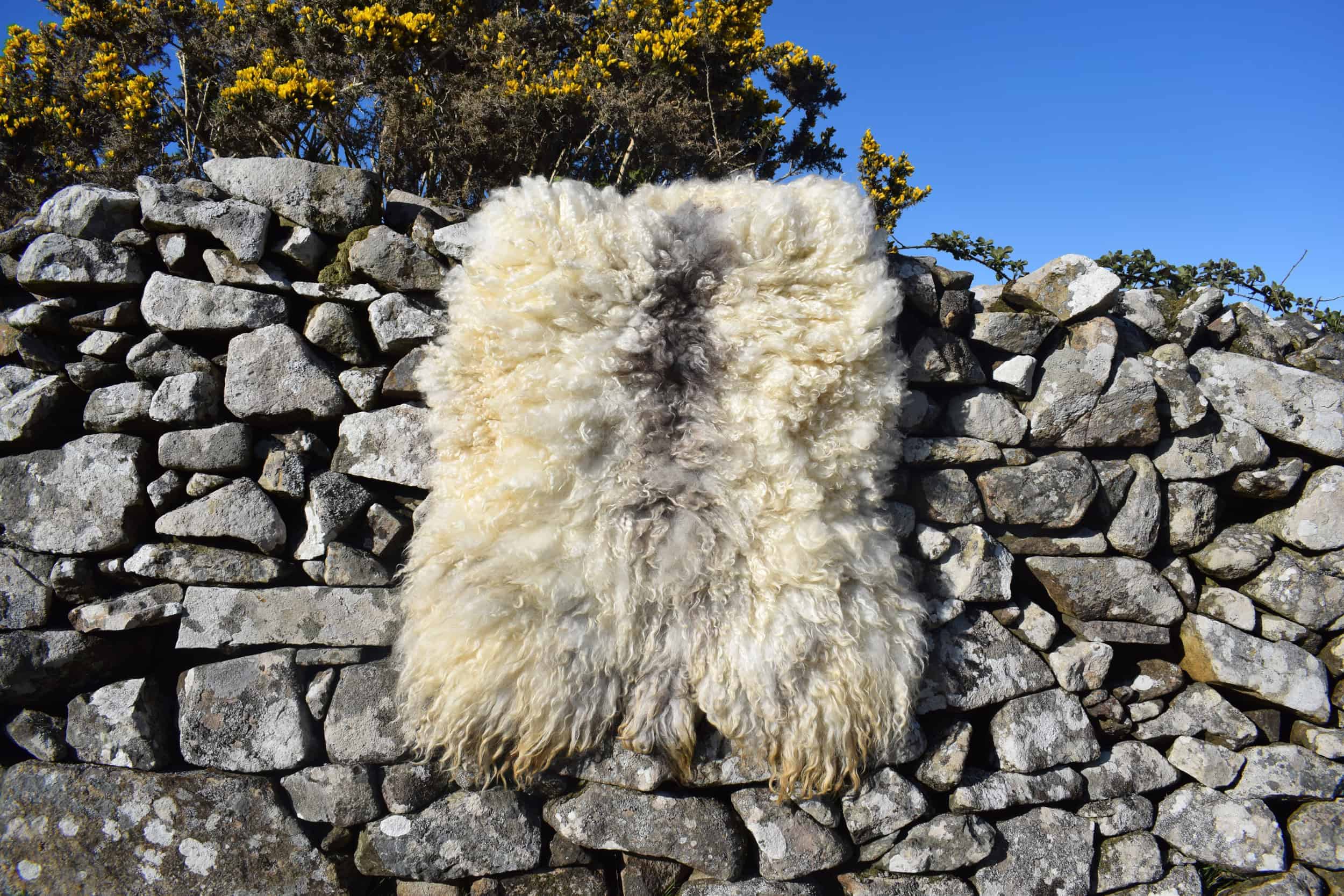 Wool texture: The feel of this fleece is soft and silky.  Sprite’s fleece has many of the characteristics of a Gotland fleece but it is a little longer and more wild-looking. The backing felt is lovely and soft but may feel a little prickly in places where the roots of the fleece poke through the felt, this is normal and shows how well the two halves (fleece and carded backing wool) have become one.