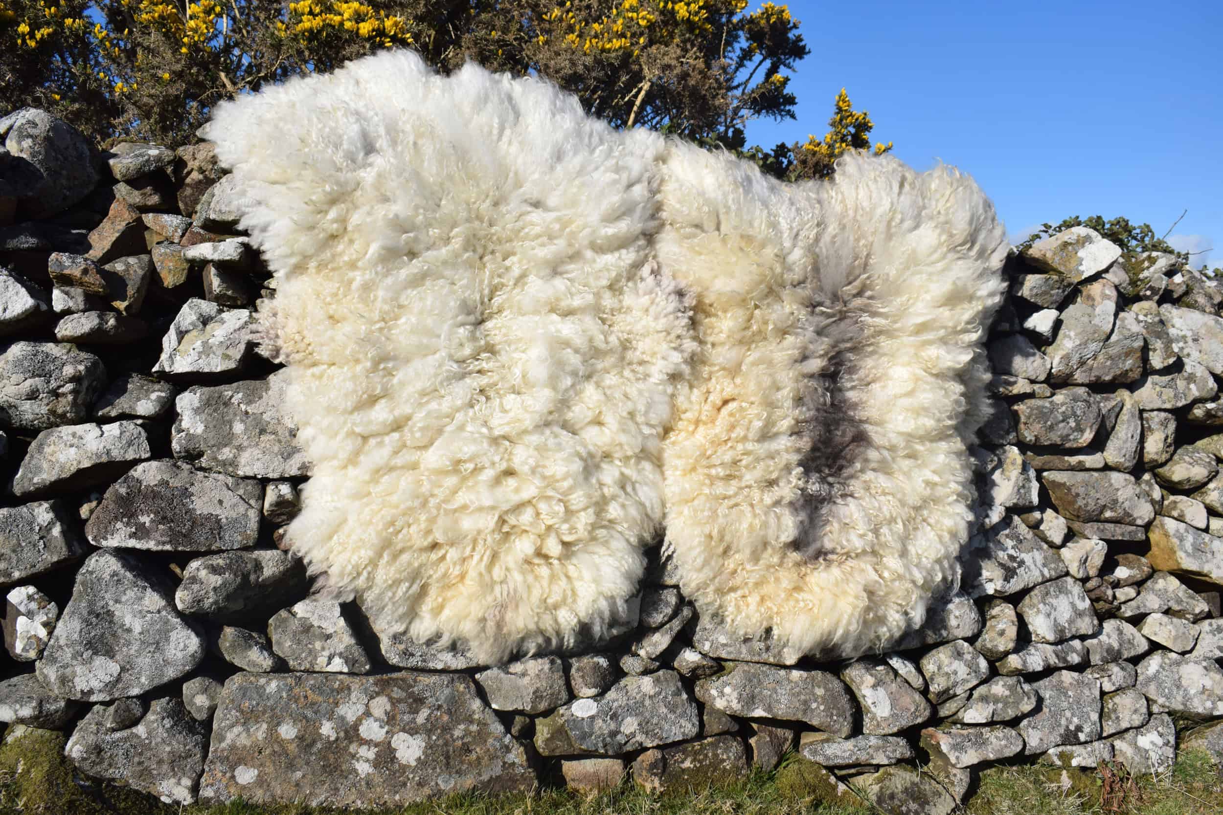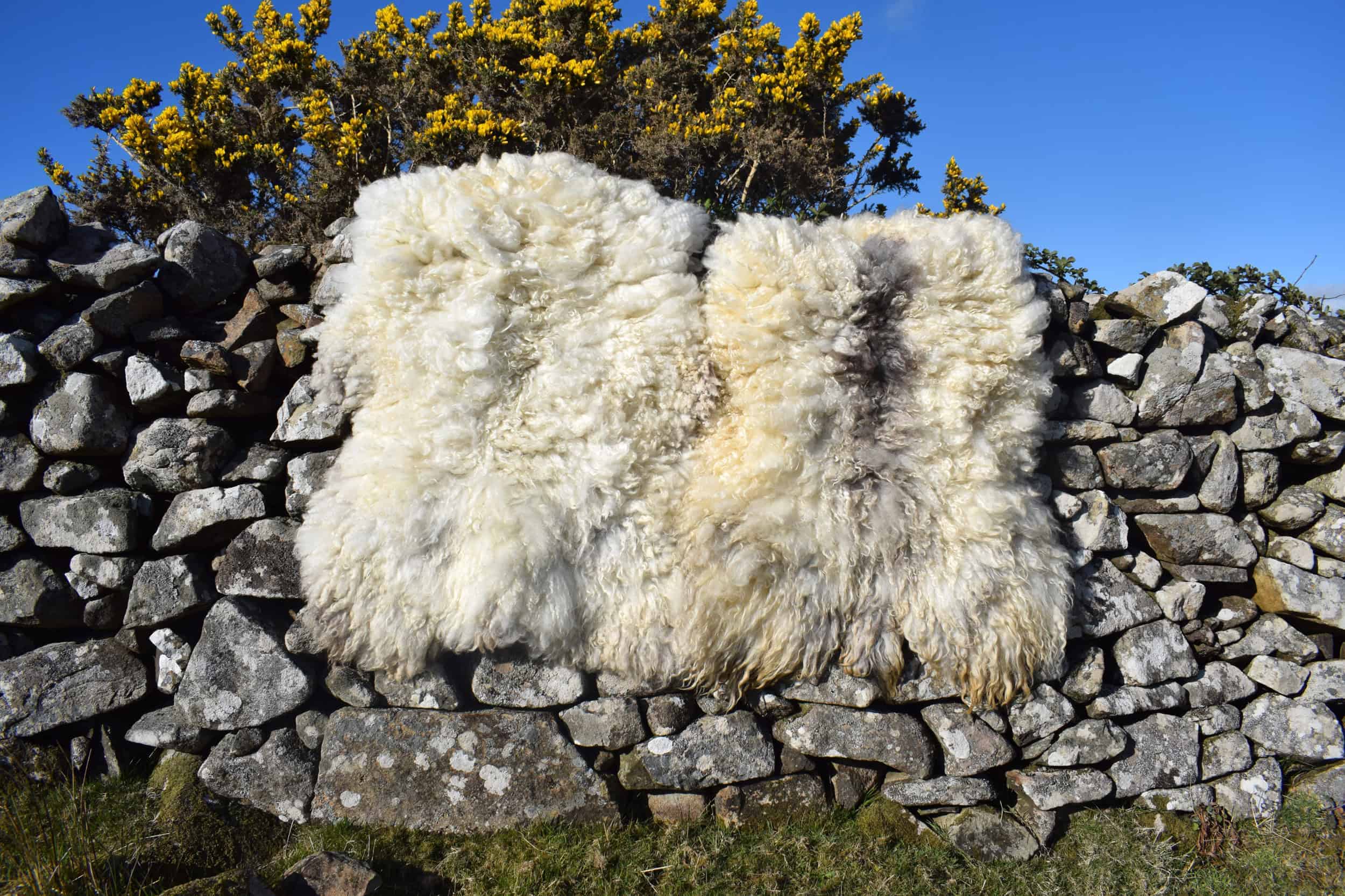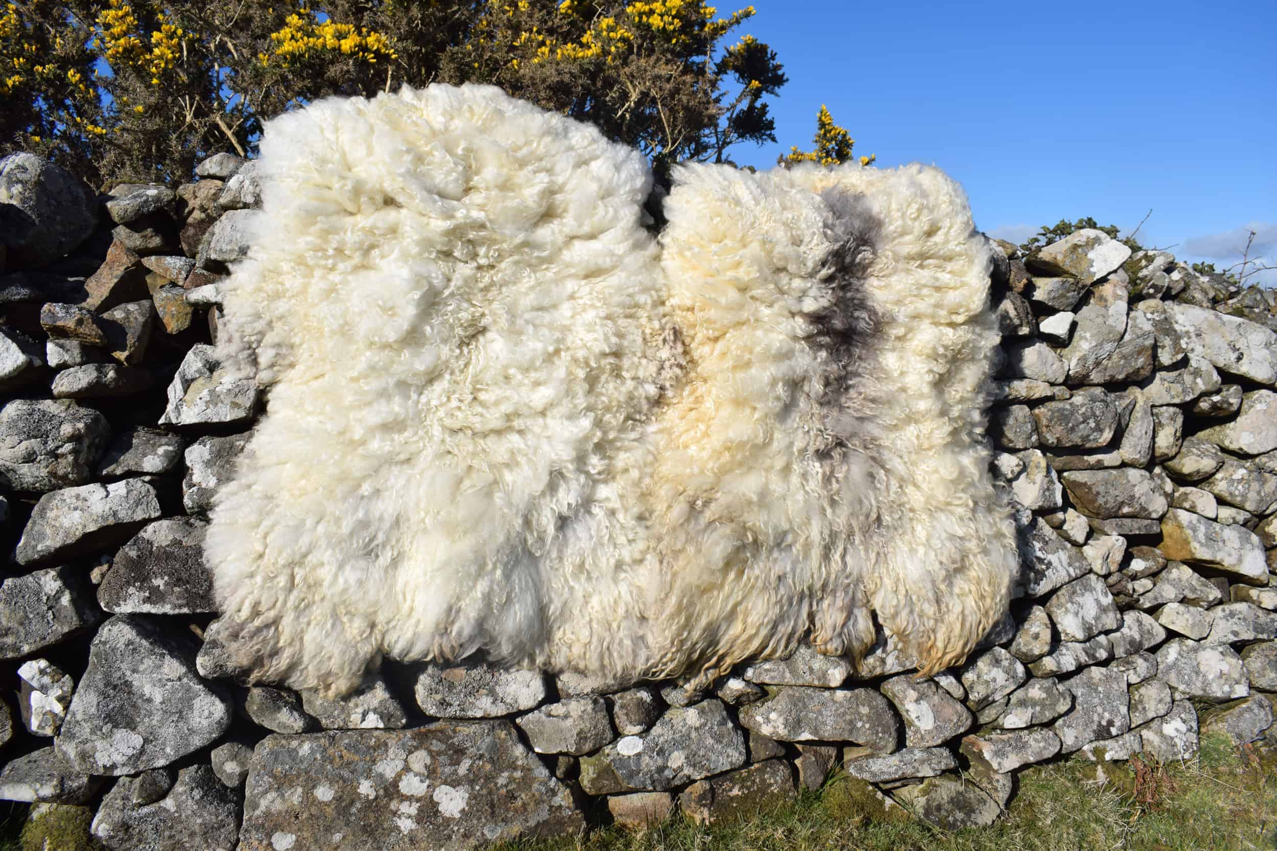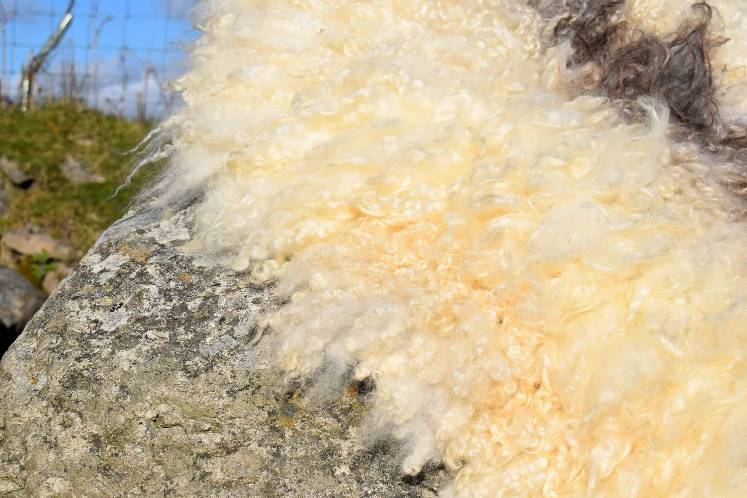 Wool texture: The feel of this fleece is soft and silky.  Sprite’s fleece has many of the characteristics of a Gotland fleece but it is a little longer and more wild-looking. The backing felt is lovely and soft but may feel a little prickly in places where the roots of the fleece poke through the felt, this is normal and shows how well the two halves (fleece and carded backing wool) have become one.