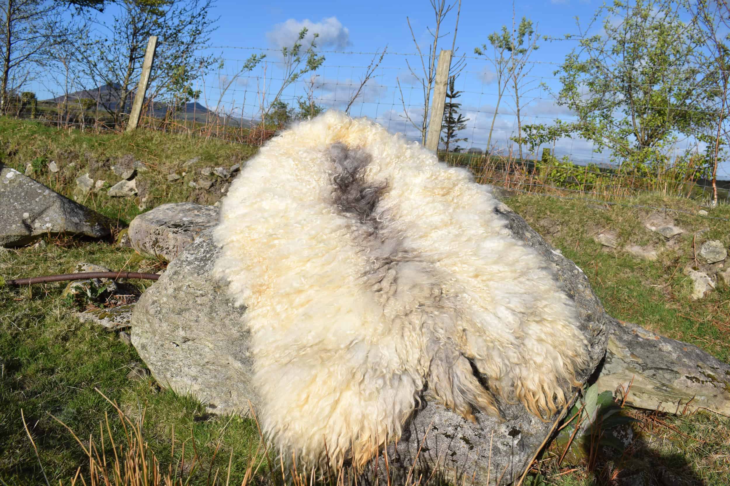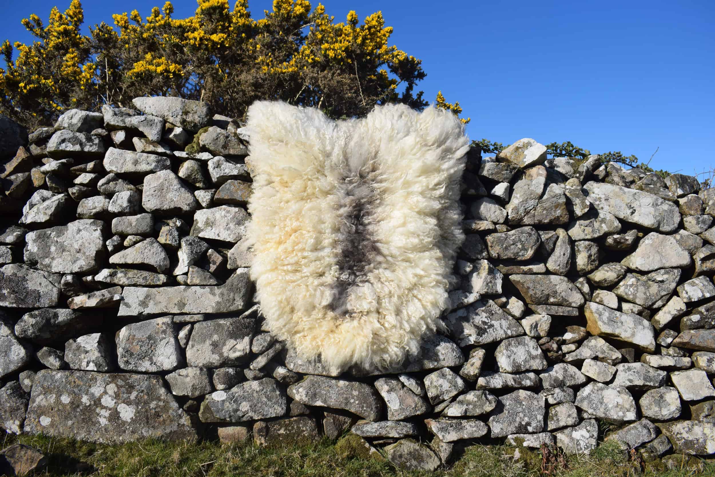 VM(aka hay/grass seeds etc):  As always you may find the odd wisp of hay or grass seed from the Welsh Hillside within the fleece and felt I have done my best to remove the ones I came across. There may be the odd bit of hay deep in the spine/center curls of Sprite’s fleece but they are few and far between. This is a natural item gently made by hand and sheep. There is a whole story behind it! The wool it is made from has spent a whole year outside growing on a sheep. It’s been through a lot, it’s seen a lot, it’s kept a sheep warm and dry and even cool at times.. its probably been dragged through a hedge (or two!), splattered with mud at some point, sprinkled with hay at another and rolled around in the spring clover as it naturally started to rise and break away from its 4 legged creator and I got my shears out – all that and the wool still looks beautiful.. none the worse for wear.. isn’t wool amazing!
