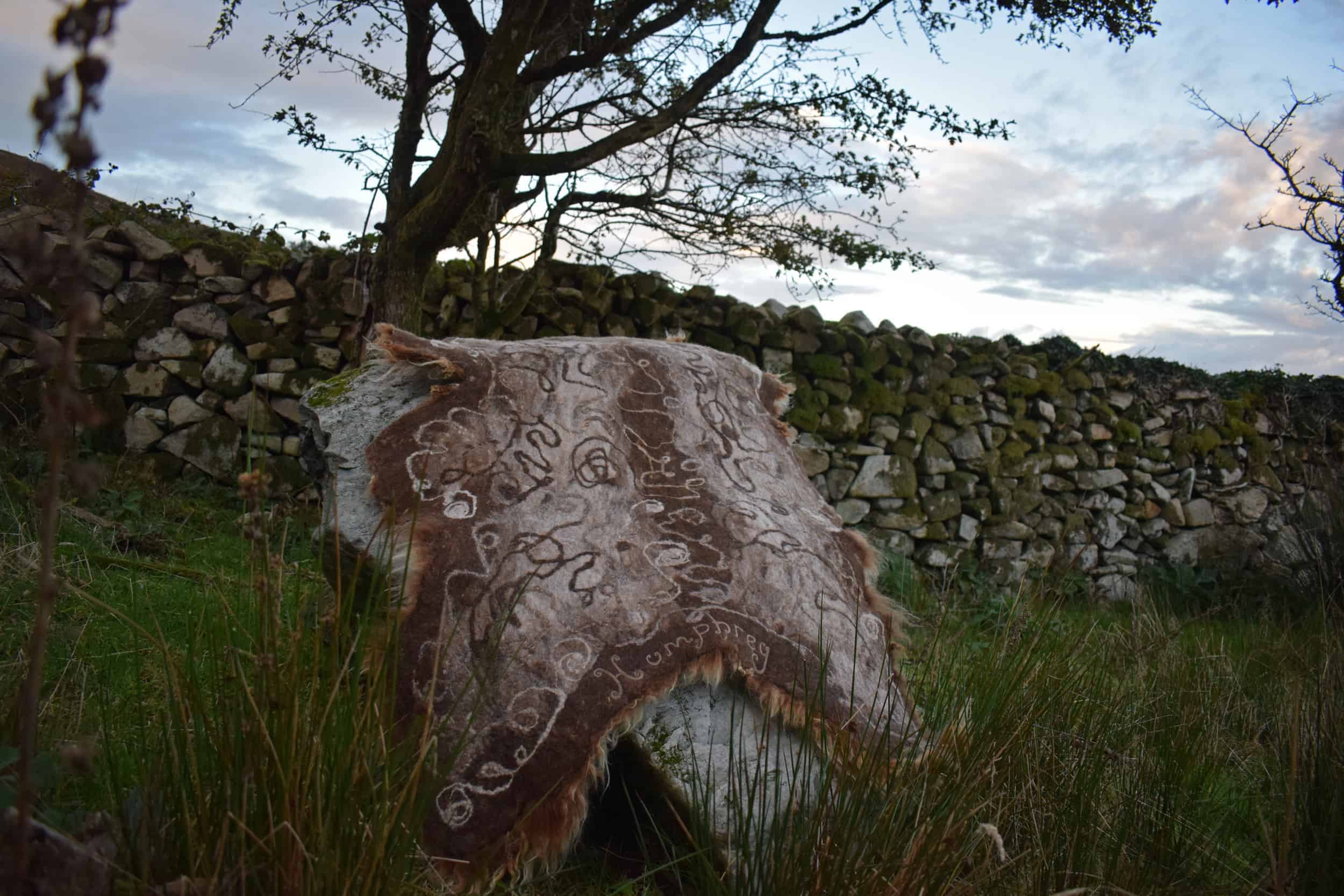 The back of the rug is made from carded wool that is then hand-felted to Humphrey’s fleece. That felted wool is a mix of wool from Humphrey and some of my other sheep – Martha and Marmalade. It also has wool from the Aklah flock in Malton. The beautiful decoration on the back is created with my own handspun yarn that is carefully arranged in a pattern before the rug is felted. I spend a huge amount of time and care making sure my rugs are felted to perfection. I am generous with the backing wool ensuring the finished rug is thick and durable and the felting is done with immense care and not rushed resulting in even tight felt that will last for years and years.
