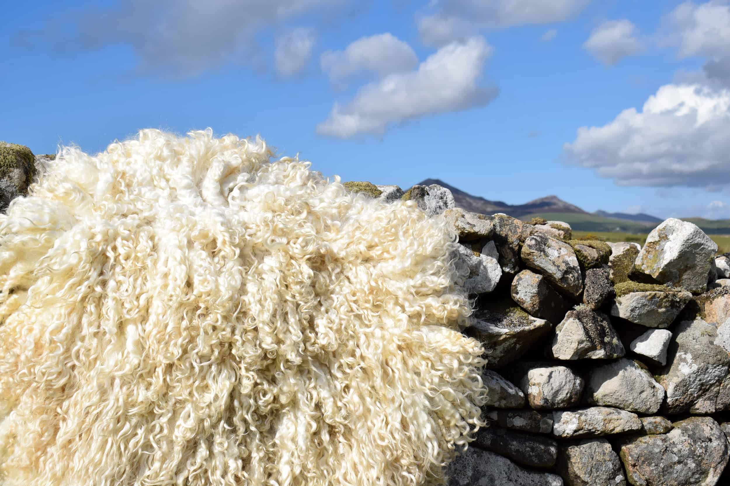 Alice’s fleece would look amazing as a display piece, photo prop, or floor rug. It is well felted on the reverse and has an amazing luxurious feel and look about it. I would class it as a heavyweight rug, it weighs a lot for its size so it is probably not something you would want to sleep under but perfect as a floor rug in a bedroom or cosy sitting room. Being made of only wool (and the odd bit of hay…) it is completely biodegradable and kind to our planet…