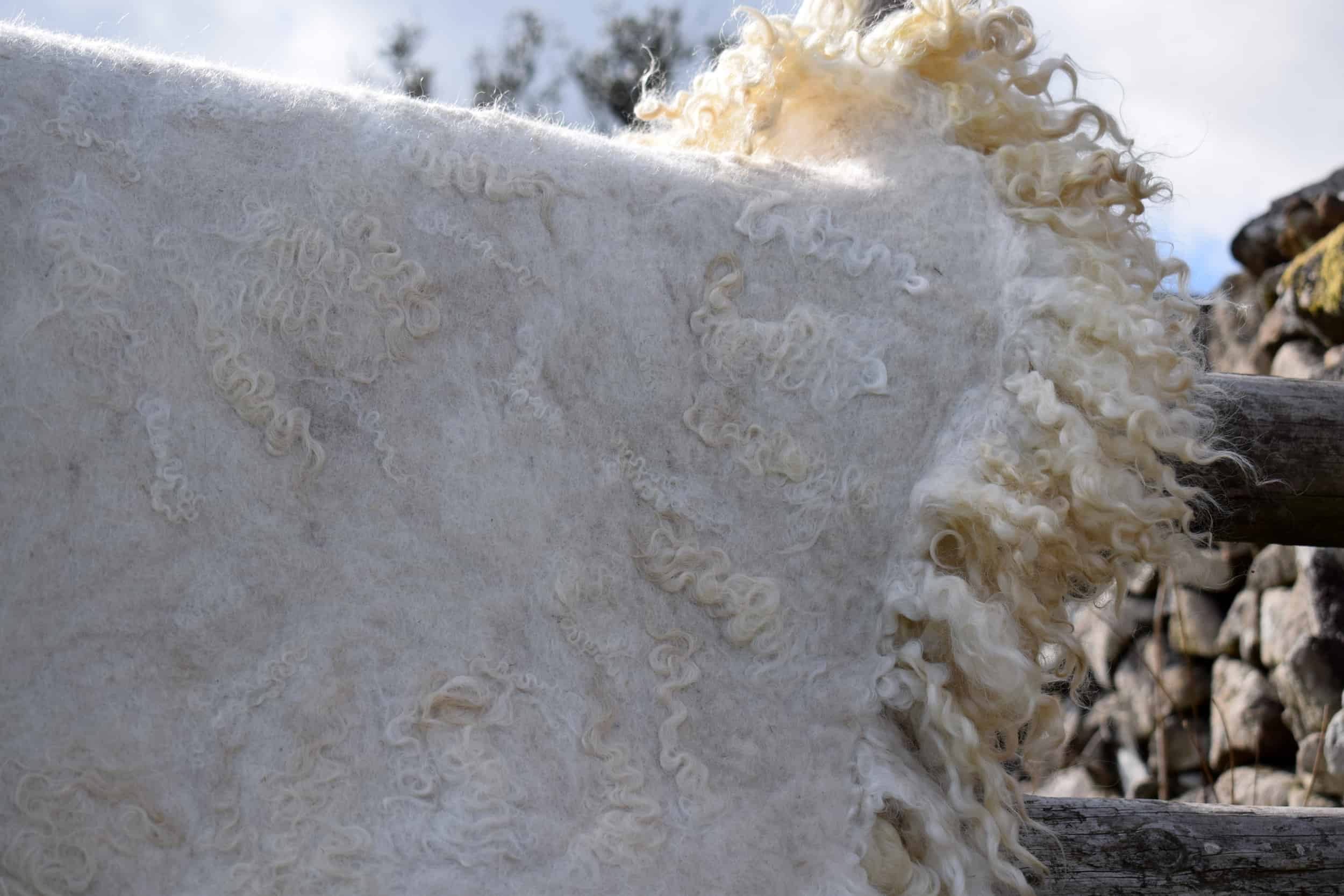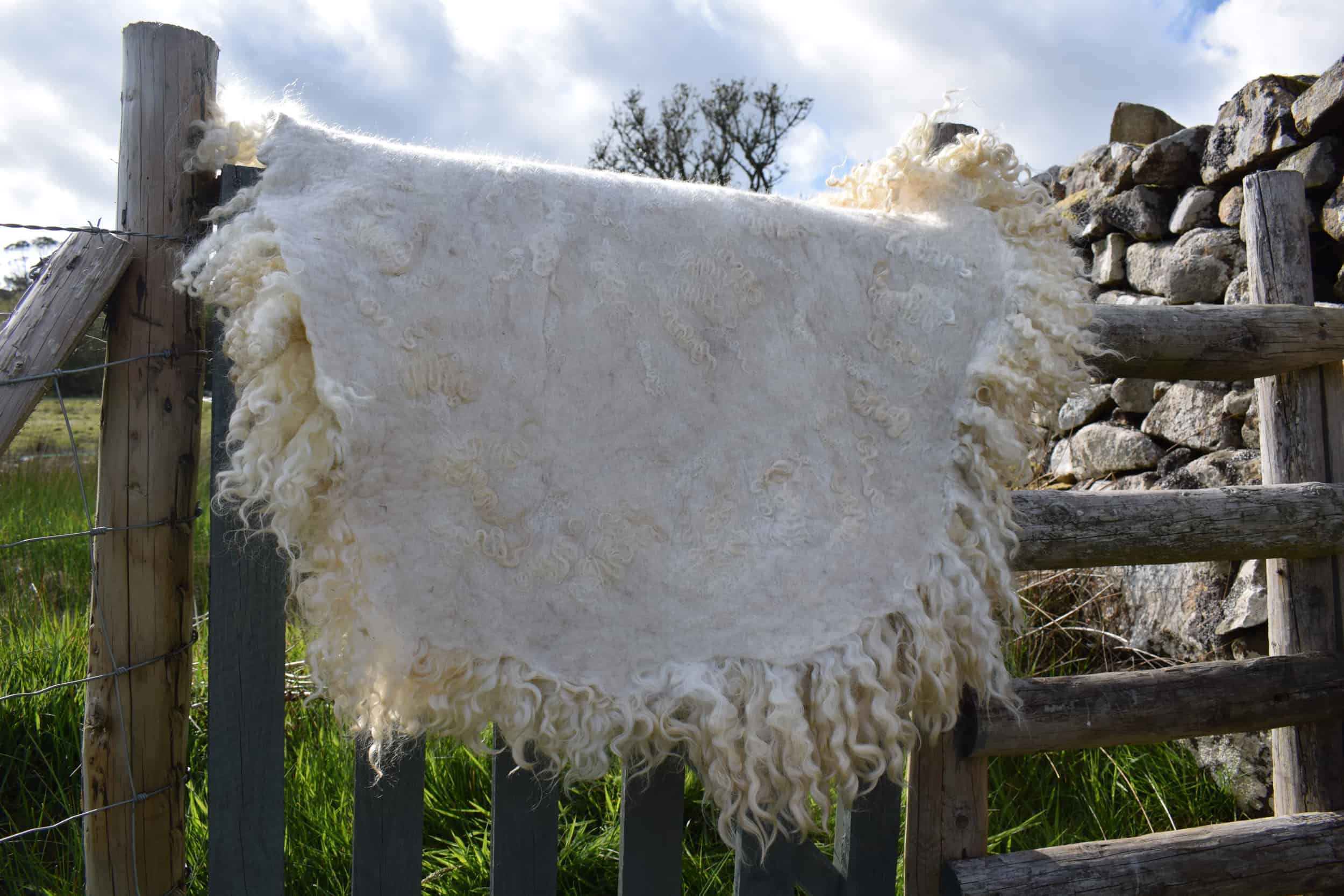 Stunning unique felted fleece sheepskin rug handmade from Alice’s 2020 fleece – just wool…