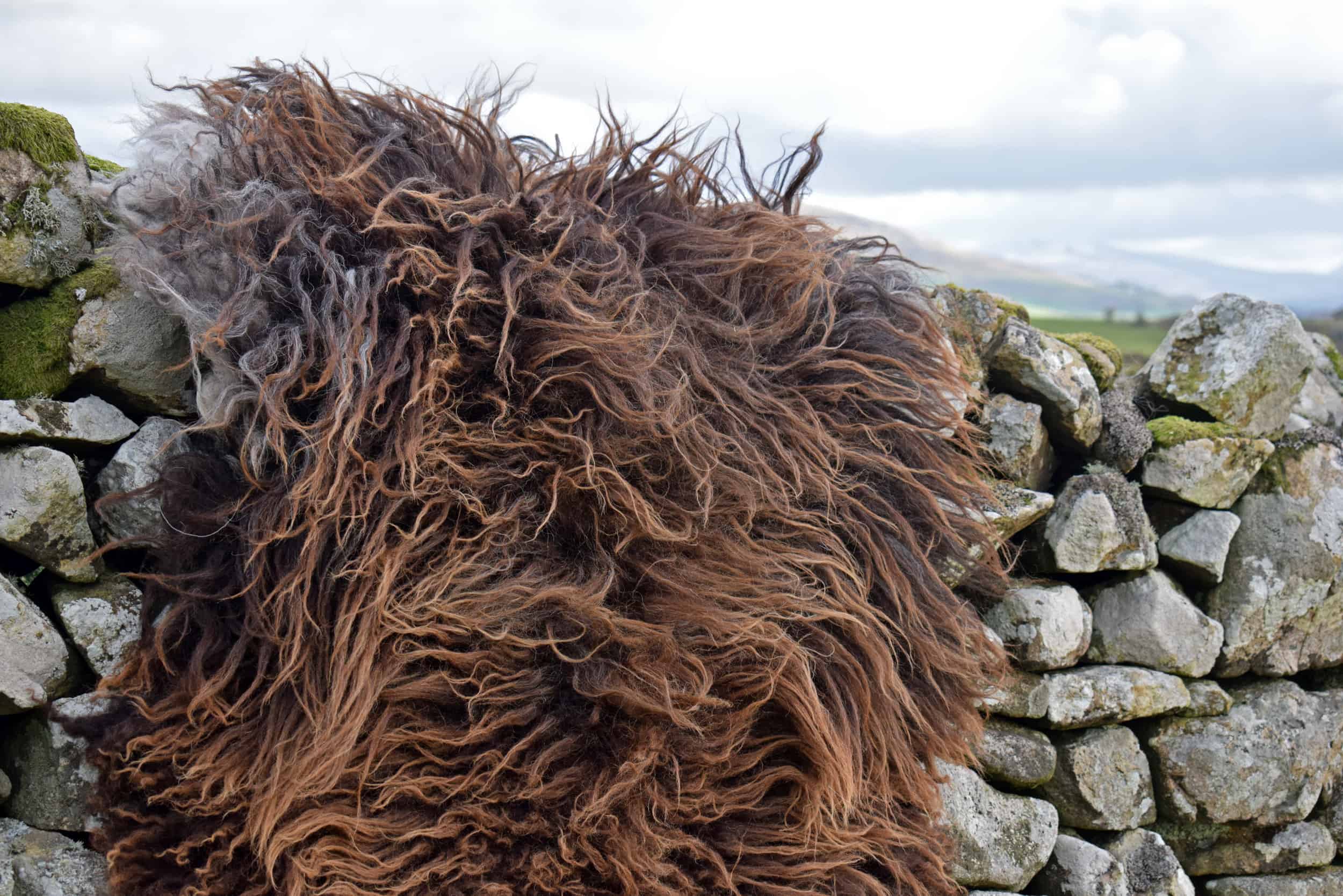 Please note like most felted sheepskin rugs it does shed wool/fibers to some degree – as Pepsi is an Icelandic cross sheep with a very hairy rugged fleece it does molt/shed hairs if rubbed against rather like a big hairy dog… Therefore it would not be suitable to sit against or lie on (unless you don’t mind being hairy like Pepsi!)