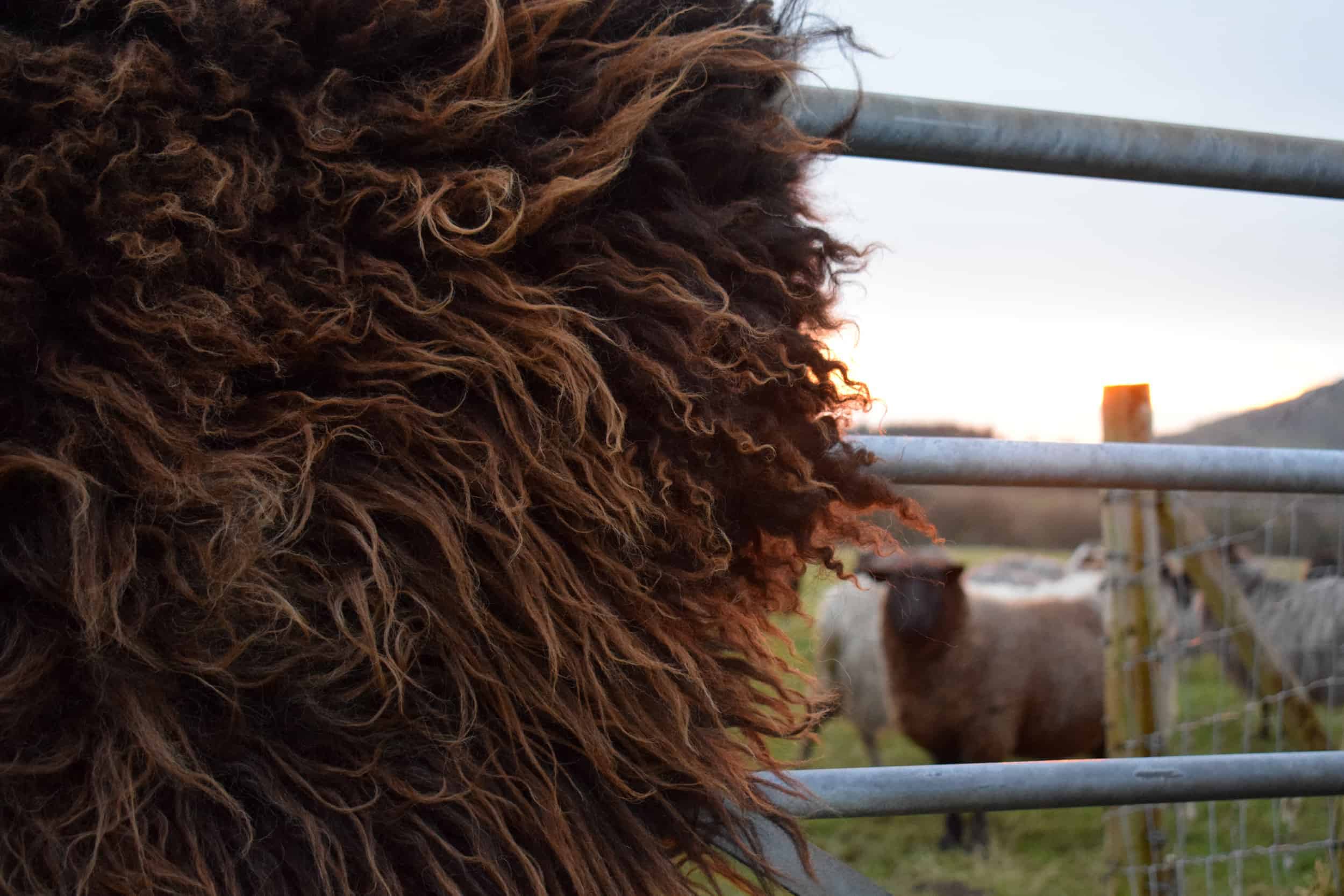 Colour: The colour of this rug is a stunning ‘black mouflon’ this colour sheep have a dark body with lighter areas on their neck, underbelly and hind legs. The rug is technically black but has pretty sun-bleached brown highlights and lighter grey/white patches that are from Pepsi’s hind legs and a little lighter area from her neck.