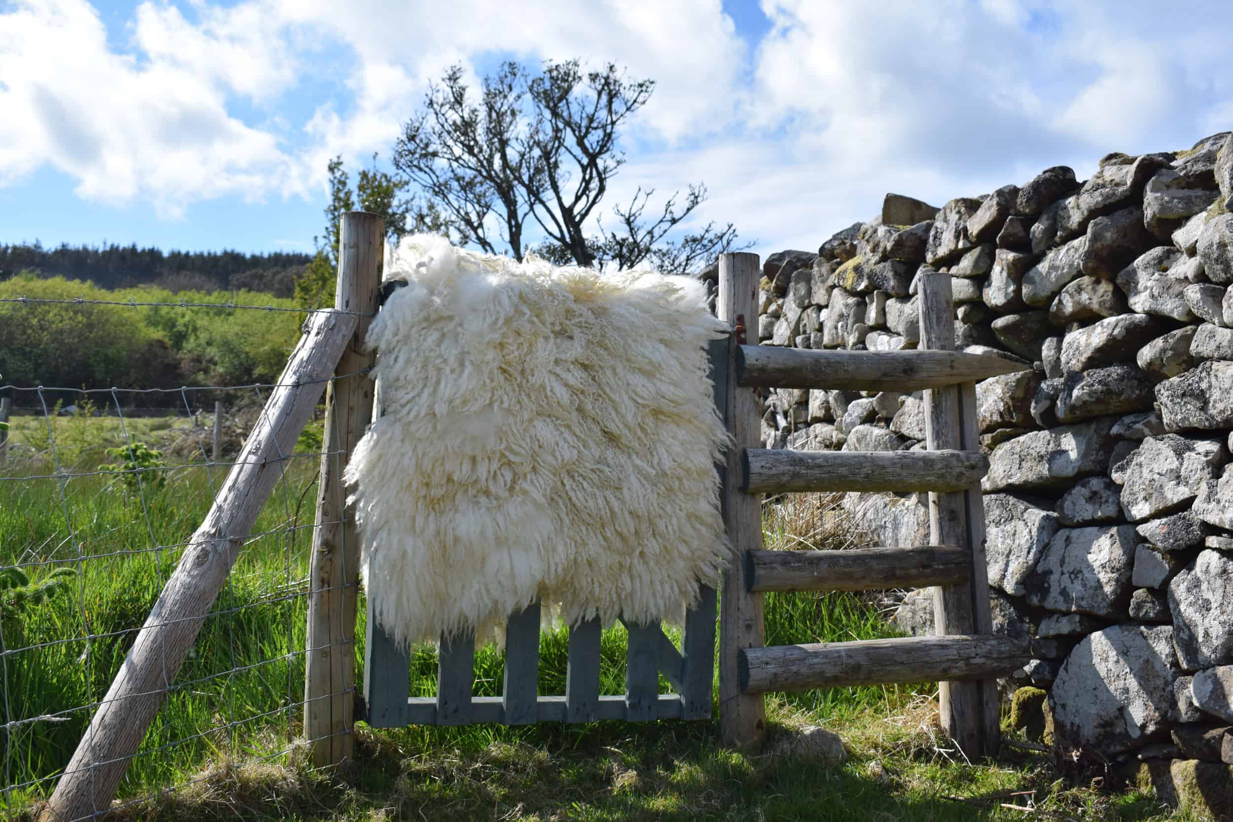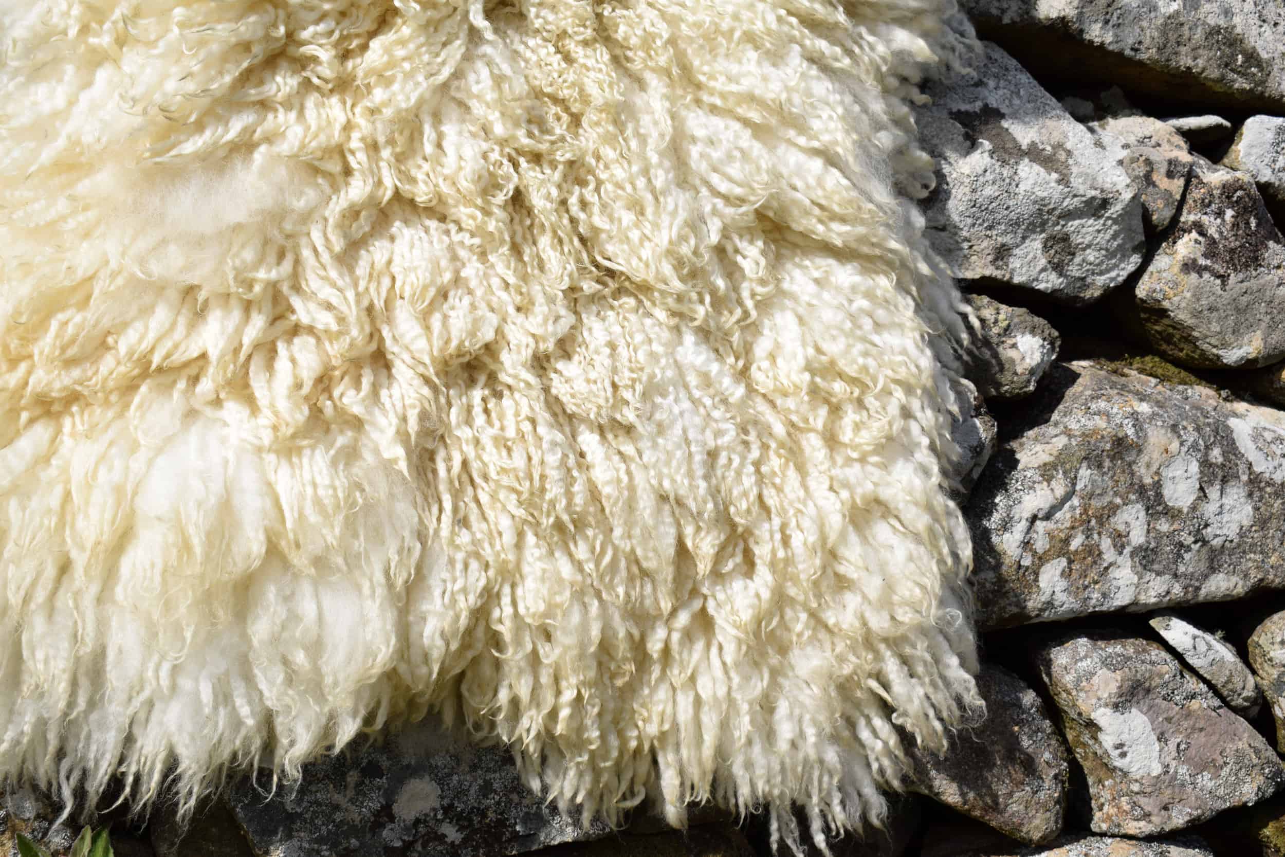 Luna’s fleece would look amazing as a display piece, photo prop, throw or floor rug. It is very soft and fluffy. I would class it as a medium weight rug, perfect to cosy up under, drape on a sofa or use as a bedside rug. Being made of only wool (and the odd bit of hay…) it is completely biodegradable and kind to our planet…