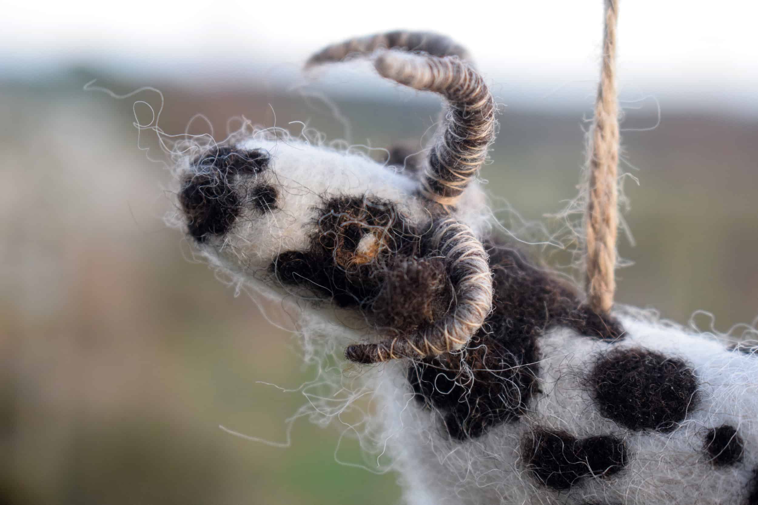 Please note – This is NOT a toy. It has been created for display and decoration purposes only. It is made from small needle felted wool pieces and hairy textured wool and the horns have a copper wire base and so could pose a hazard for babies or small children. Please DO NOT give to children under 3 years old.
