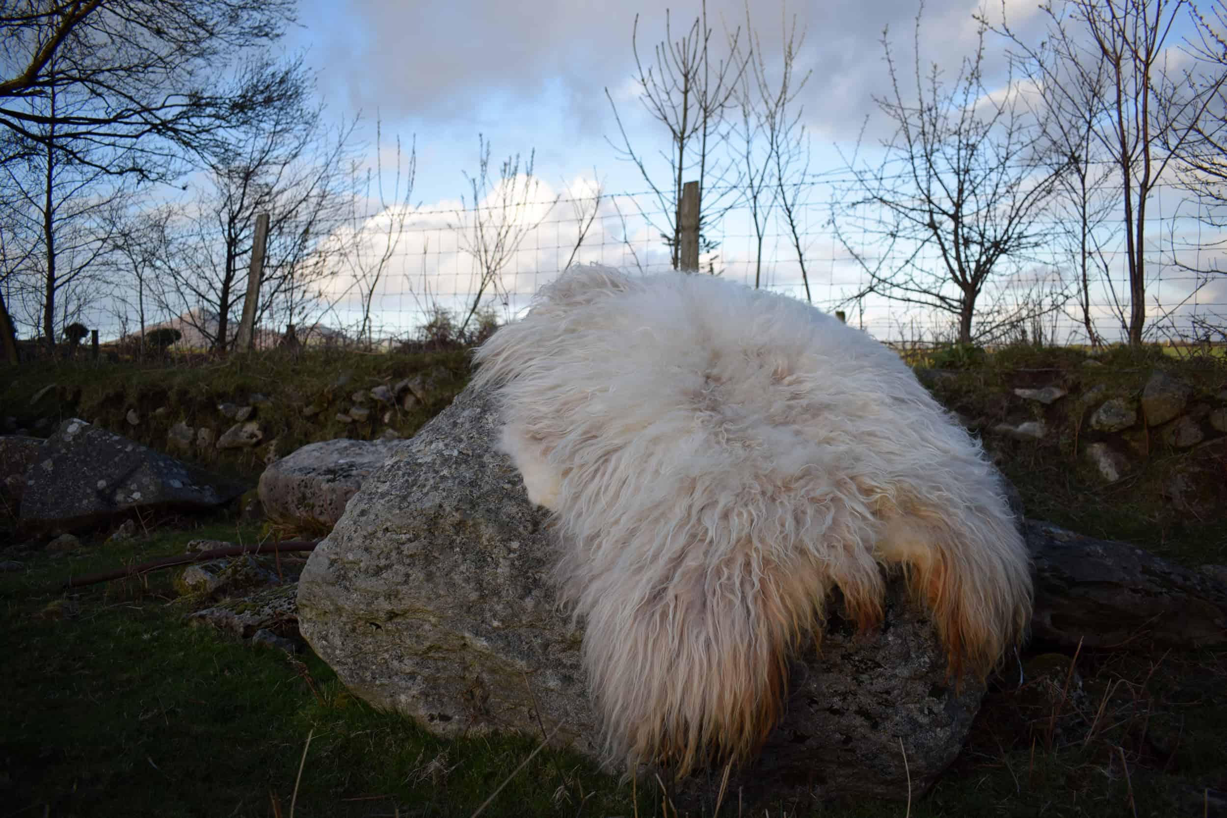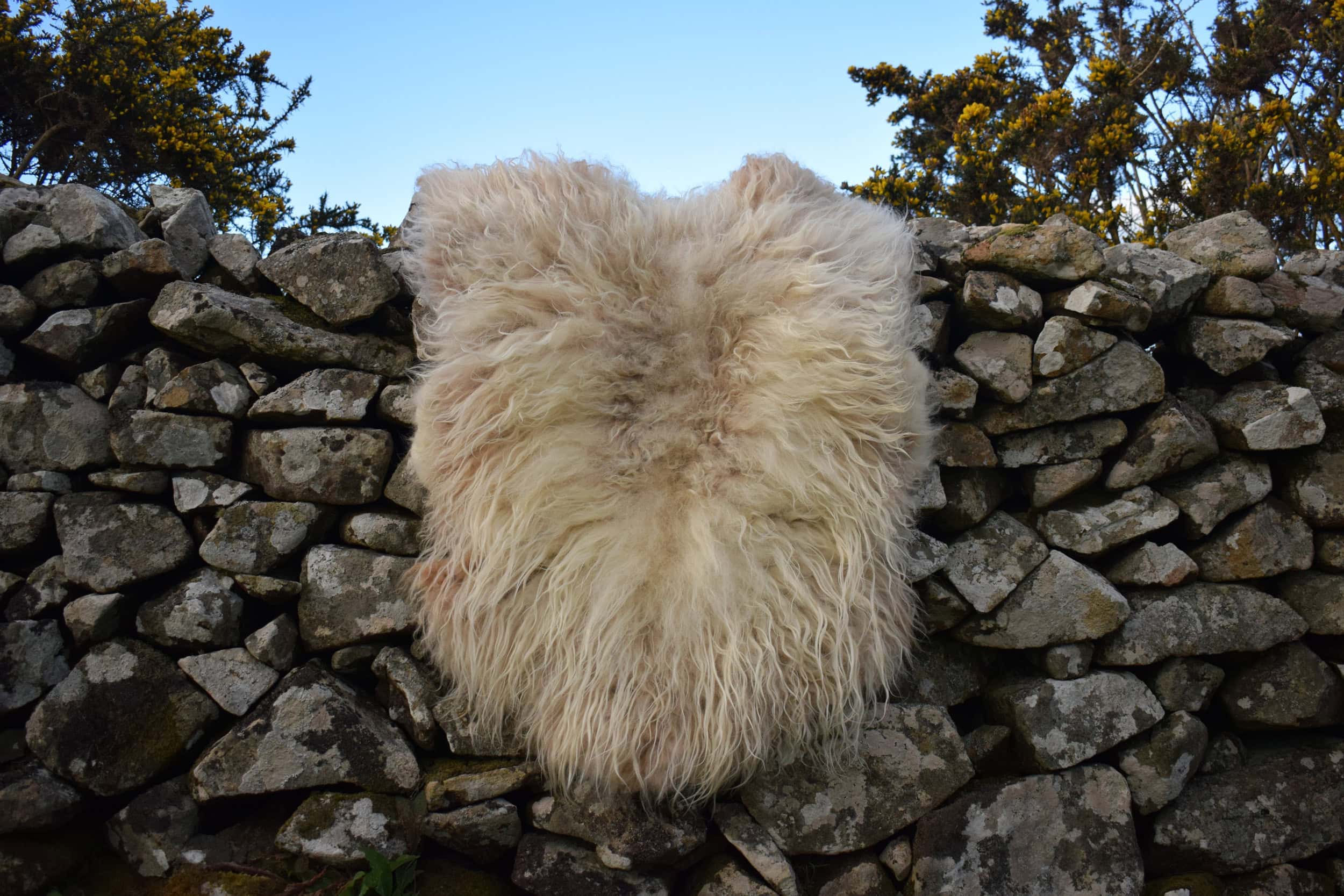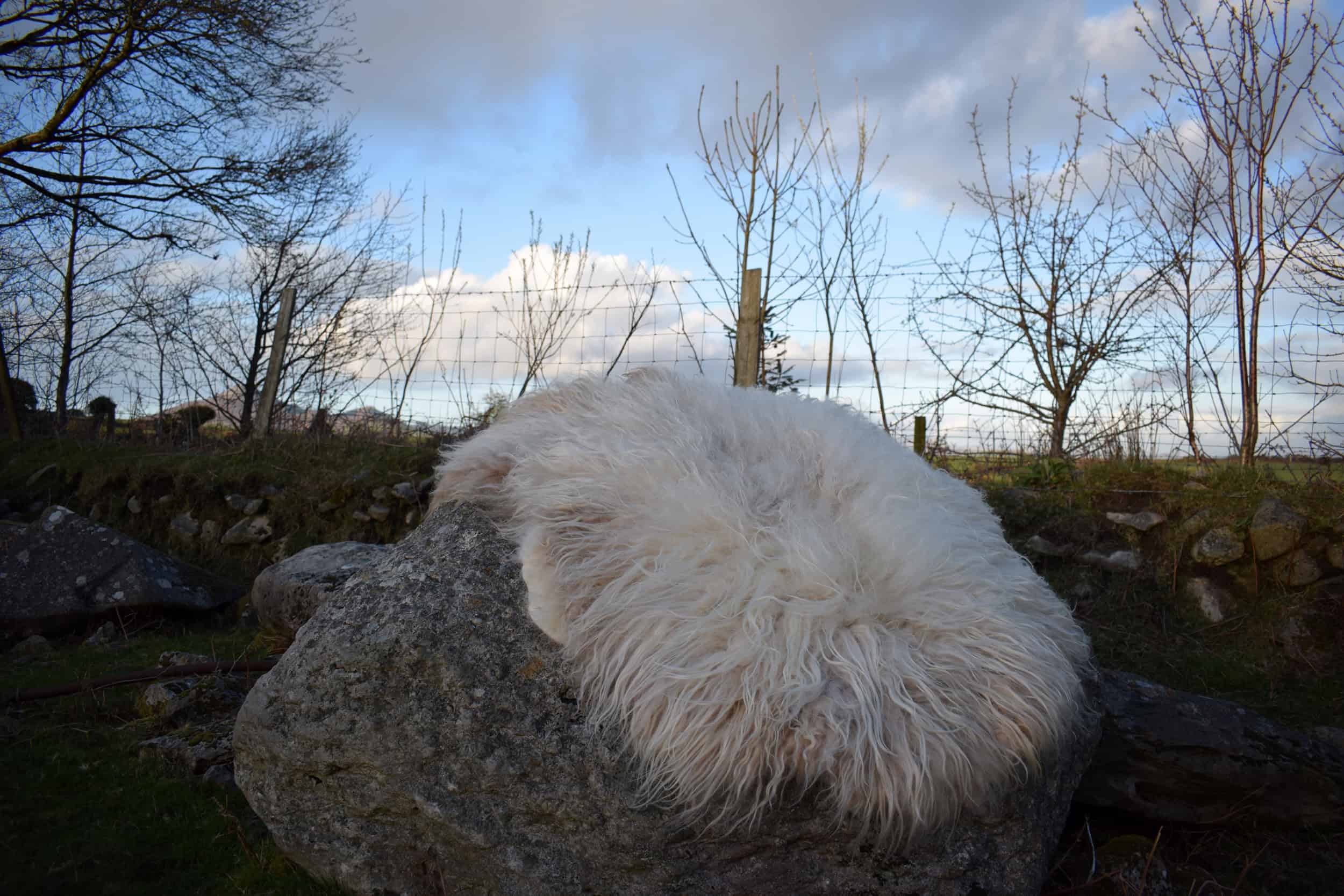 VM(aka hay/grass seeds etc): Minimal. As always you may find the odd wisp of hay or grass seed from the Welsh Hillside within the fleece and felt I have done my best to remove the ones I came across. There may be the odd bit of hay deep in the spine/center of Maris’ fleece but they are few and far between. This is a natural item gently made by hand and sheep. There is a whole story behind it! The wool it is made from has spent a whole year outside growing on a sheep. It’s been through a lot, it’s seen a lot, it’s kept a sheep warm and dry and even cool at times.. its probably been dragged through a hedge (or two!), splattered with mud at some point, sprinkled with hay at another and rolled around in the spring clover as it naturally started to rise and break away from its 4 legged creator and I got my shears out – all that and the wool still looks beautiful.. none the worse for wear.. isn’t wool amazing!