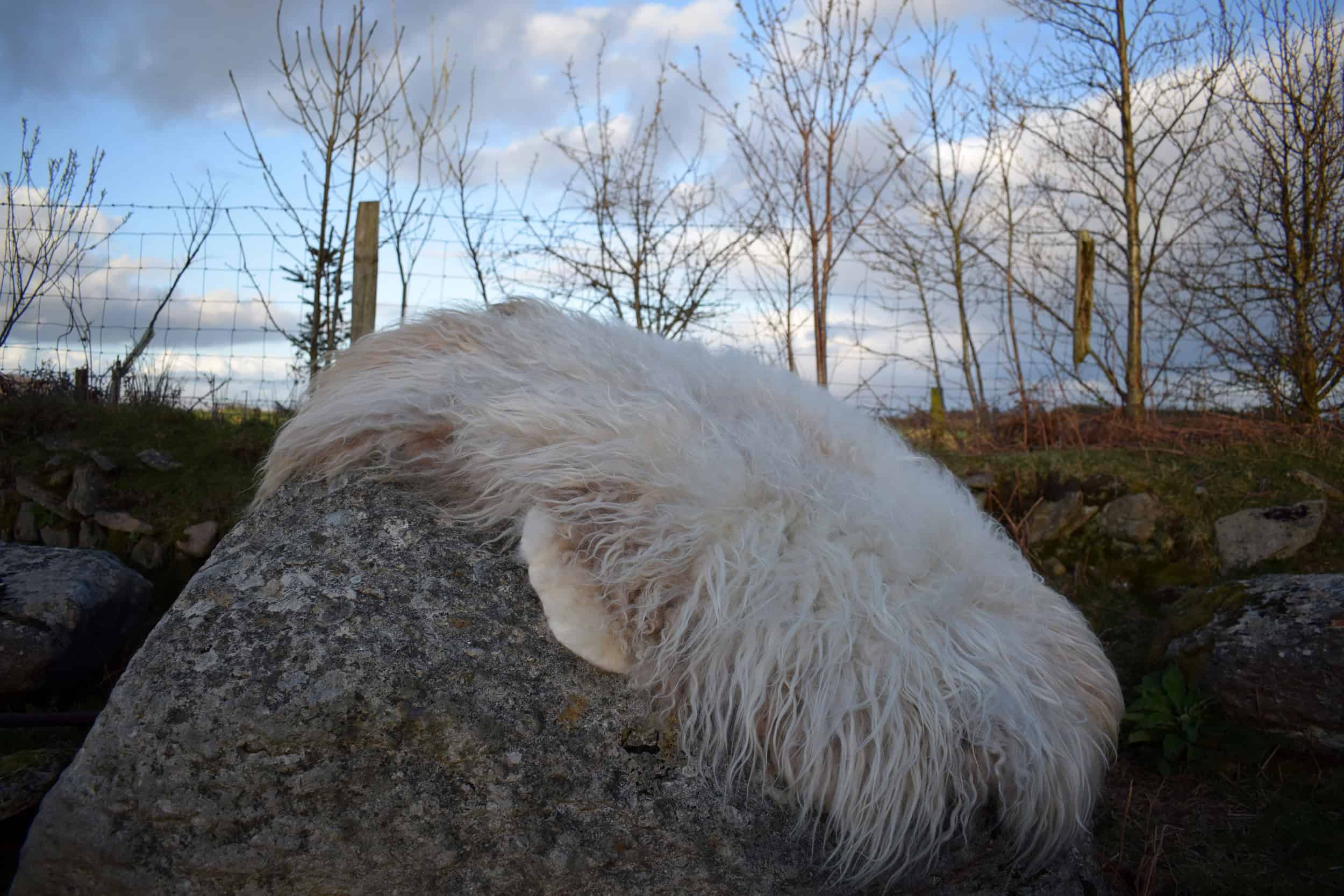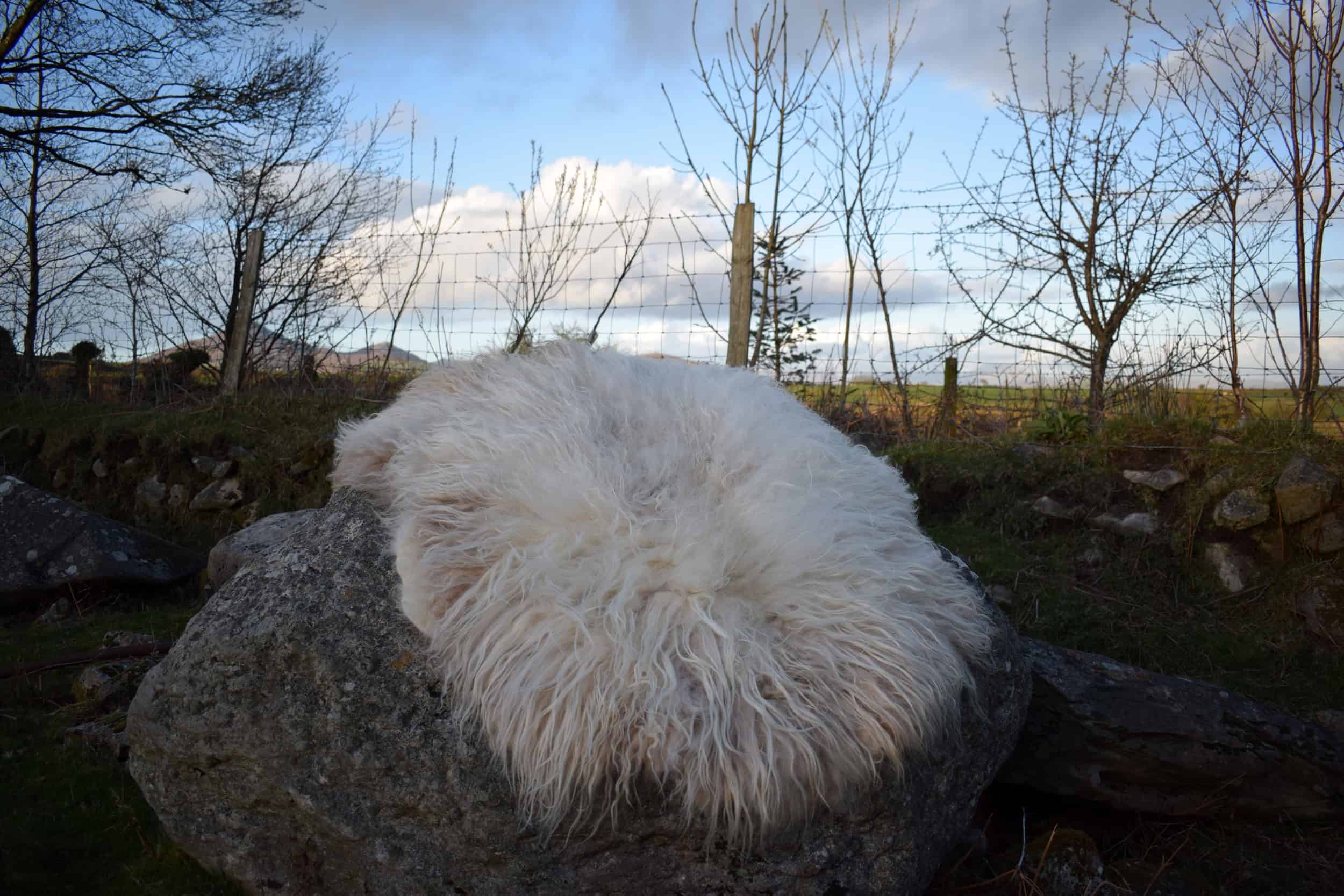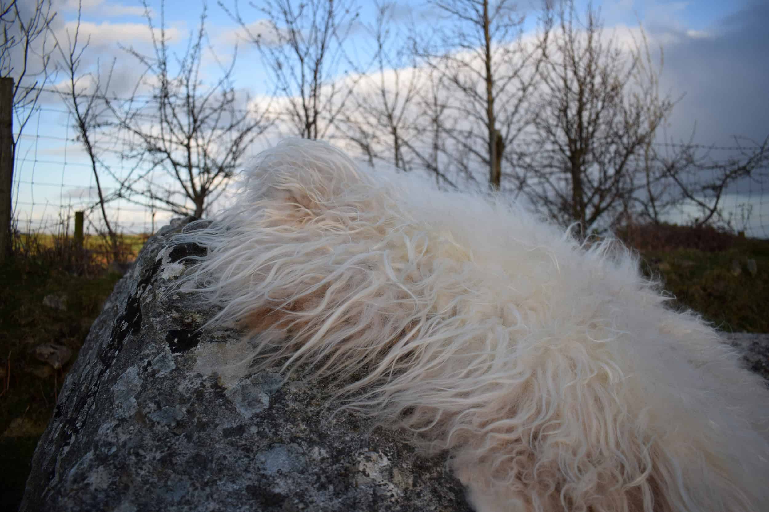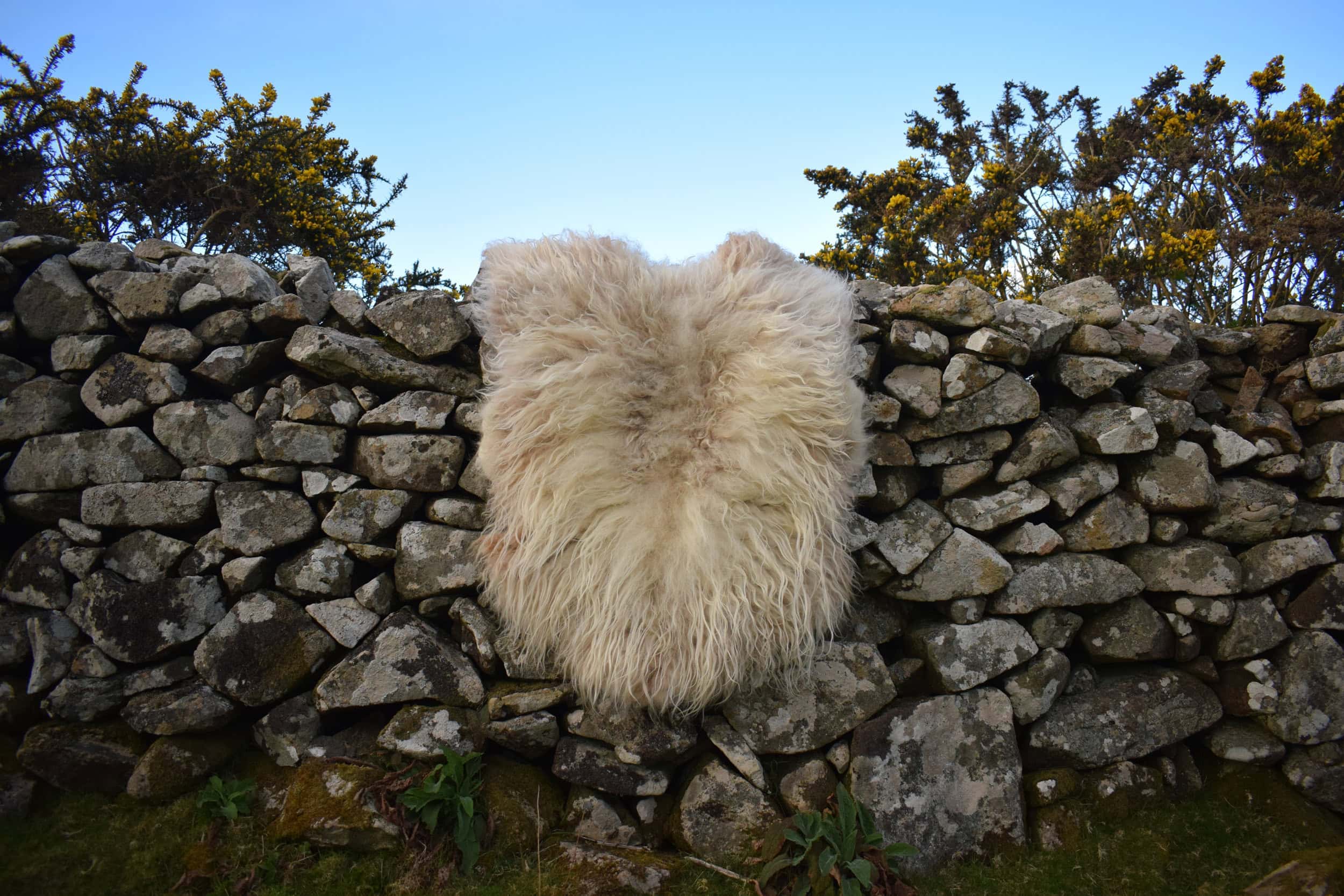 VM(aka hay/grass seeds etc): Minimal. As always you may find the odd wisp of hay or grass seed from the Welsh Hillside within the fleece and felt I have done my best to remove the ones I came across. There may be the odd bit of hay deep in the spine/center of Maris’ fleece but they are few and far between. This is a natural item gently made by hand and sheep. There is a whole story behind it! The wool it is made from has spent a whole year outside growing on a sheep. It’s been through a lot, it’s seen a lot, it’s kept a sheep warm and dry and even cool at times.. its probably been dragged through a hedge (or two!), splattered with mud at some point, sprinkled with hay at another and rolled around in the spring clover as it naturally started to rise and break away from its 4 legged creator and I got my shears out – all that and the wool still looks beautiful.. none the worse for wear.. isn’t wool amazing!