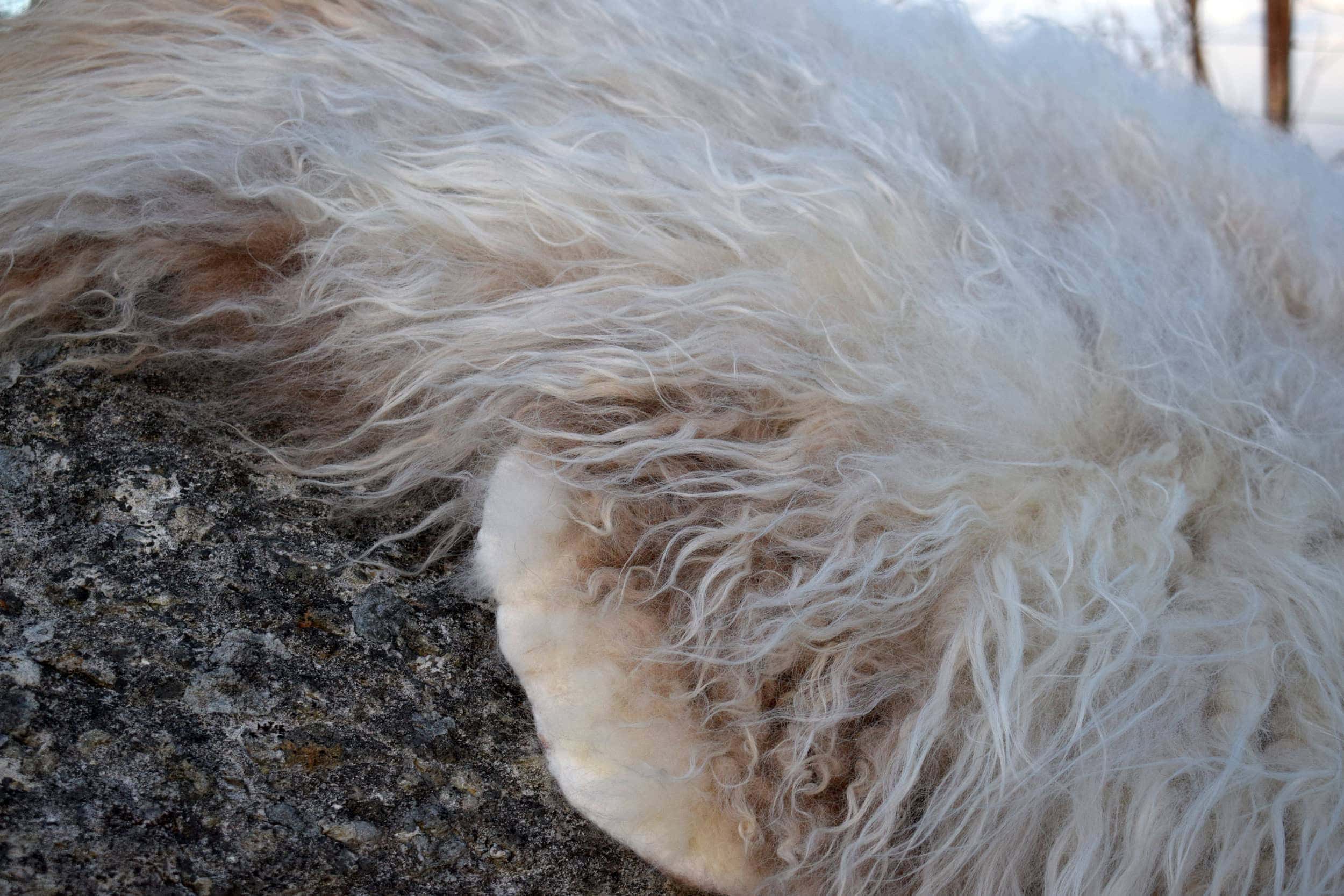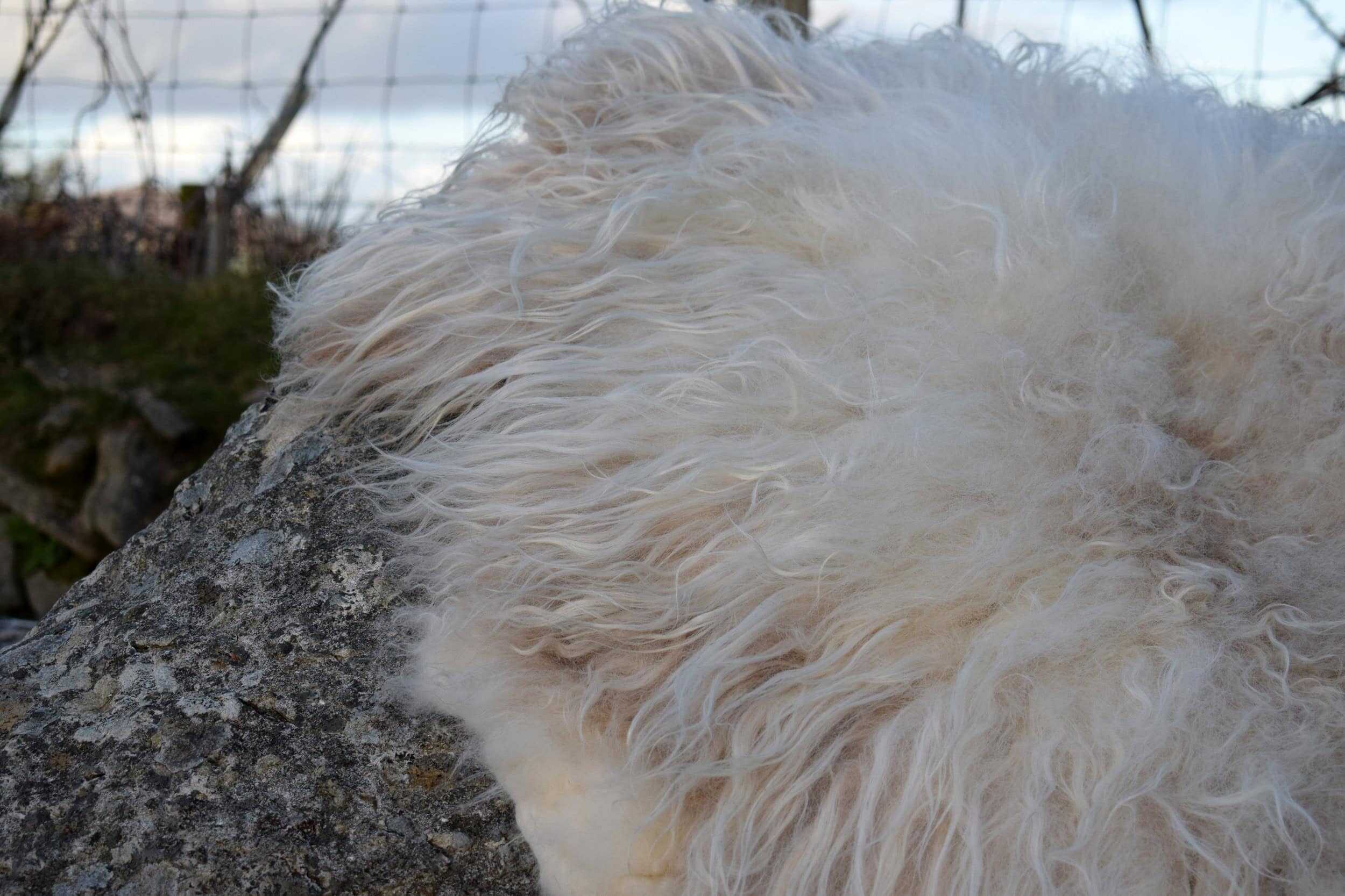 Wool texture: The feel of this fleece is soft and silky. Icelandic fleeces are very light weight and very fine dual coated wool. Meaning they have a woolly under coat and long hairy guard hairs that shed water and protect the sheep from the weather. Though they look wild and hairy they are actually soft and very fine and not coarse fleeces.