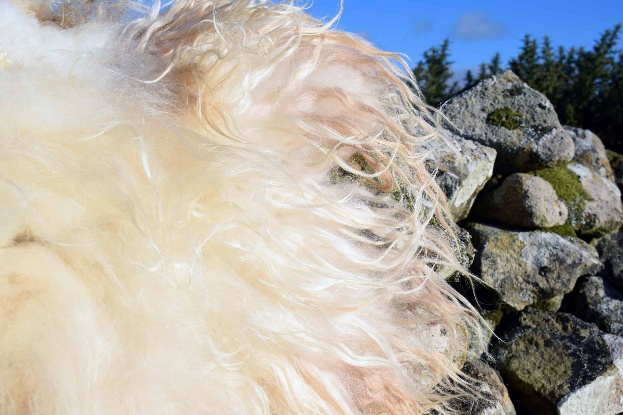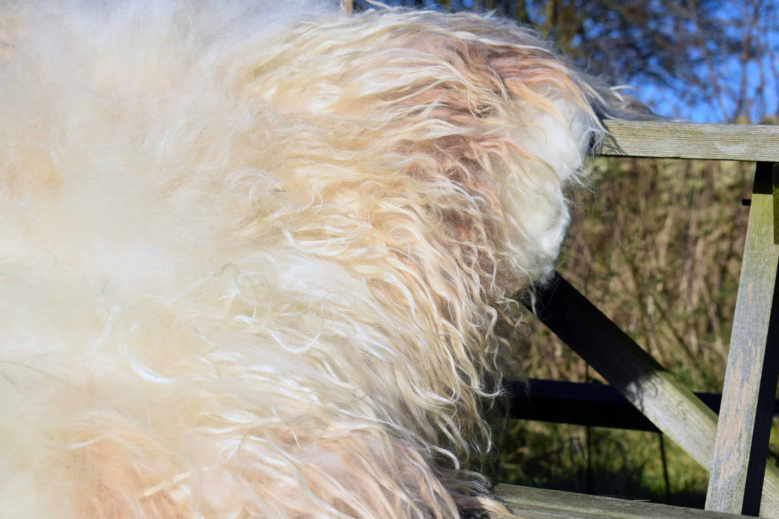 This particular rug is best suited to display and light use as Piper is a pure Icelandic sheep she has a dual coat and the longer outer guard hairs of Icelandic fleeces have a tendency to moult, which this fleece does in certain places along the edges where the locks are very thick and long.