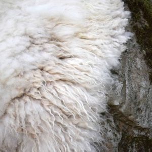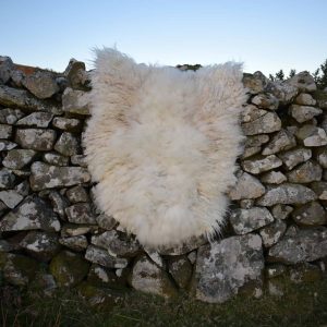 Sorrel’s fleece is a lightweight fleece so it is perfect to drape on a chair or bed and equally suited to use as a cosy rug. Like most felted fleeces it does moult a little on both sides, most noticeable along the edges of the fleece where the fiber is longer. Moulting usually lessens and settles down after a few weeks or months depending on the fleece.
