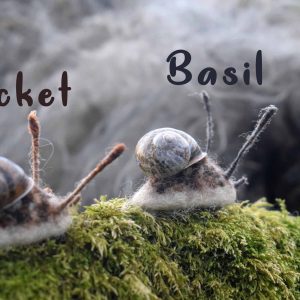 Please view the photos and select which snail you would like to buy from the drop-down menu. There are two to choose from and a selection of photos identifying them. Rocket is the snail with a brown/tan shell and brown/tan tentacles/antenna and Basil is the snail who is more grey color, his shell has a faded grey patch and his body and antenna/tentacles are more grey in colour. The sheep helping out in the photos is Sven the Icelandic ram.