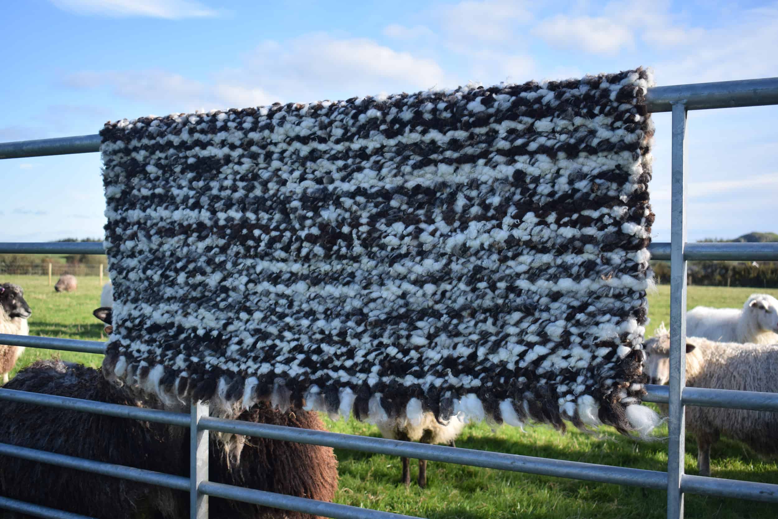 Perfect as a gift or treat for your home! This is not just a rug or throw but a unique piece of art and there will never be another exactly the same! Whilst it took me countless hours over 2 weeks to weave it, Sweep the sheep spent 3 years growing the wool used! Due to it’s soft texture this piece is best suited to light use such as a throw or rug in a bedroom or sitting room and not intended to have muddy boots upon it or be used in a high traffic area. Due to the large size it is fairly heavy.